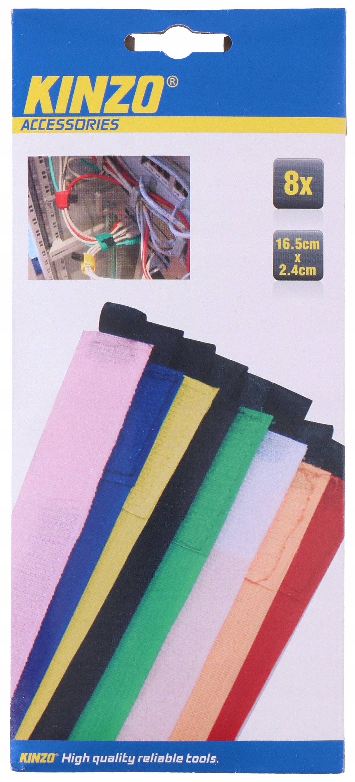 Ремешки на липучке для кабелей KINZO, размеры 2,4 x 16,5 см. В наборе 8 деталей разных цветов. Они помогаютсгибать шнуры питания, обеспечивая их аккуратность и безопасность. Они позволяют спрятать провода за спинкой стола или комода. Связанные таким образом, они занимают меньше места. Легко собрать. Ремни-липучки можно быстро расстегнуть, что позволяет быстро разобрать.