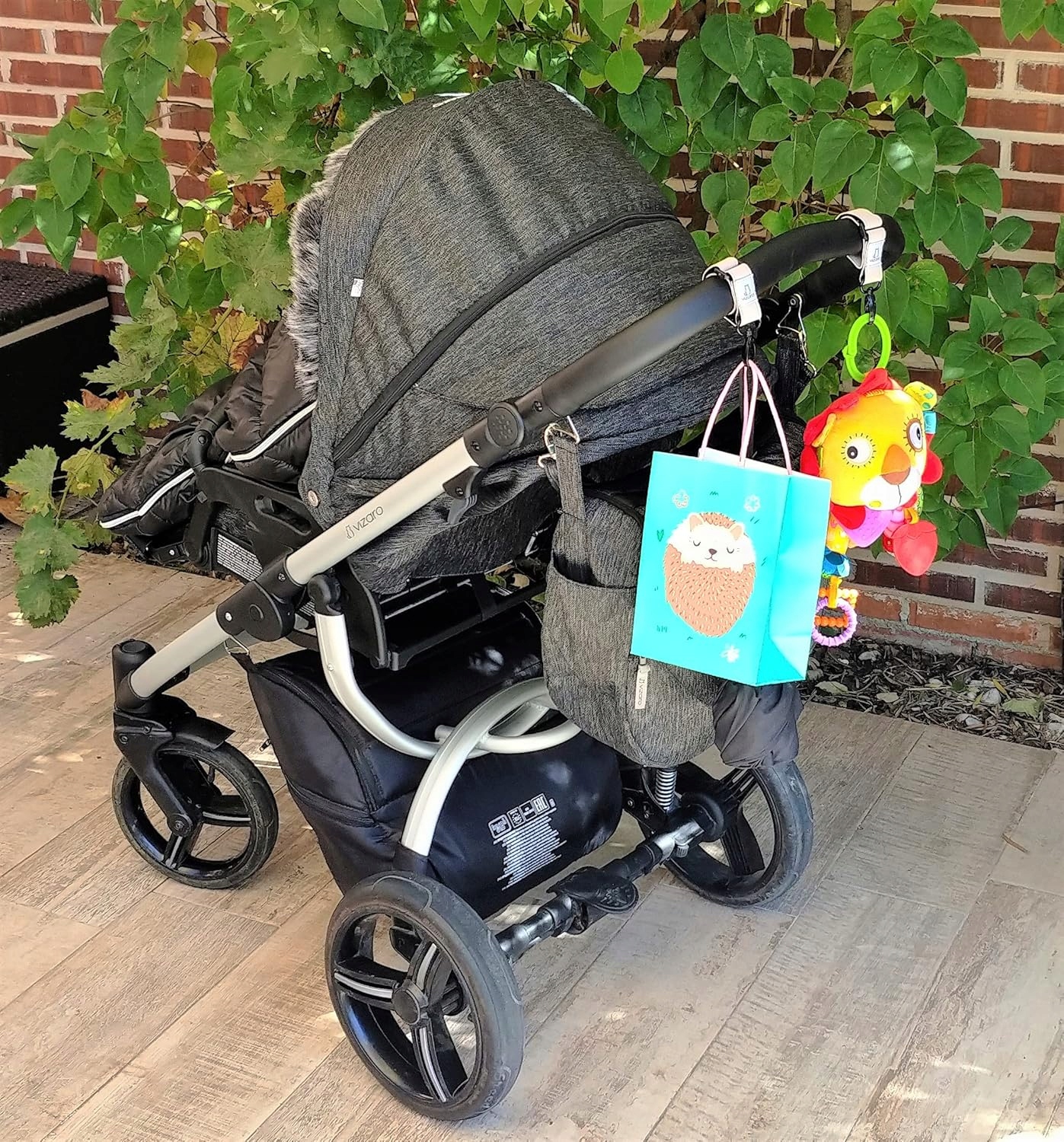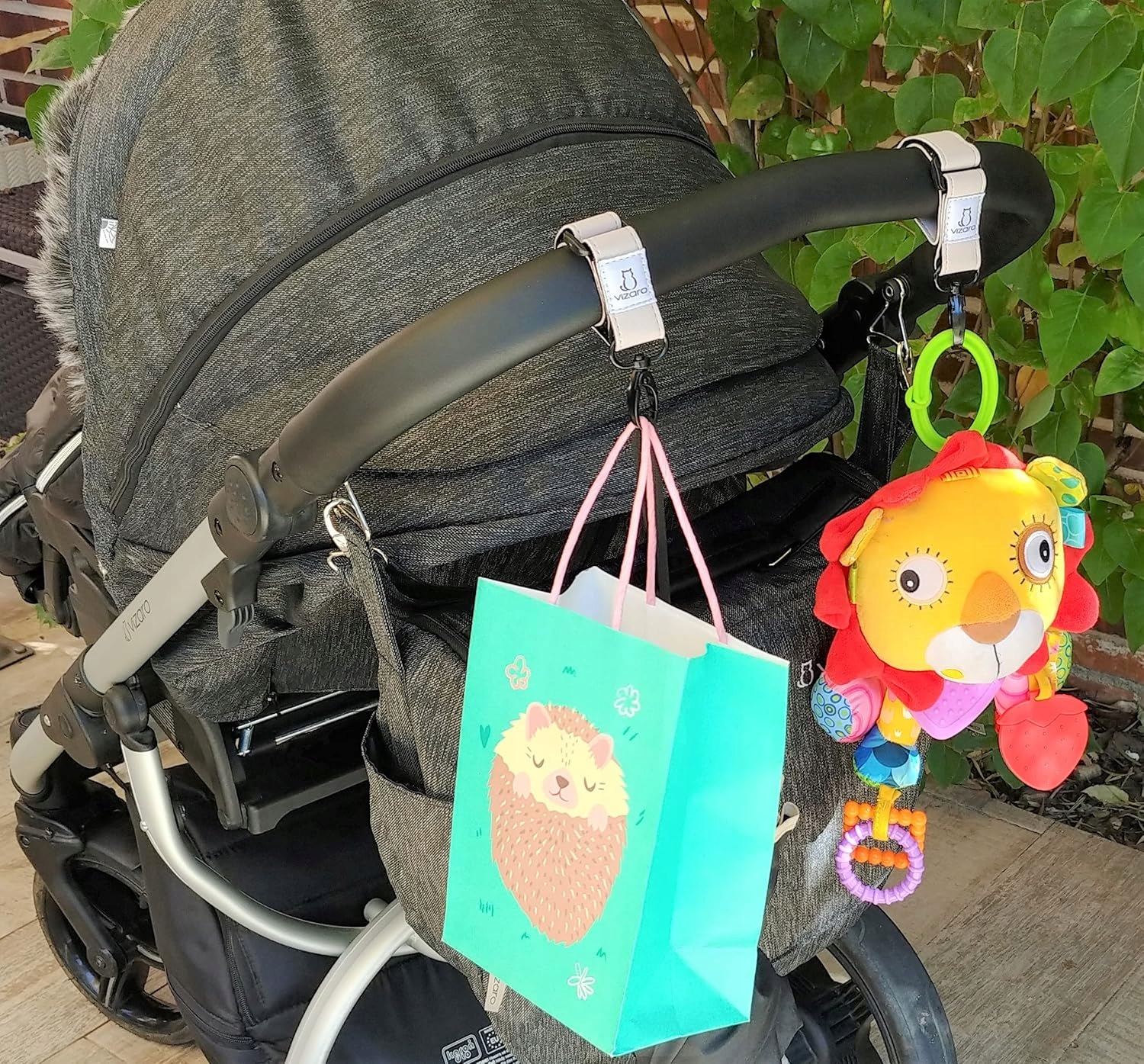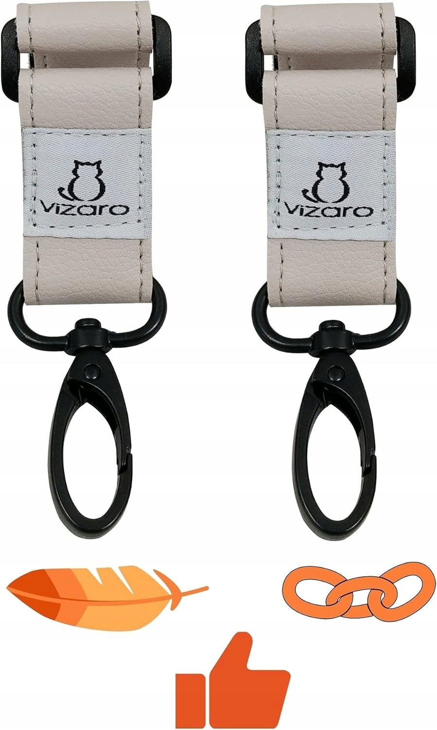 <р> ✅ ЭЛЕГАНТНО И РОСКОШЬ: красивый и элегантный ремень из высококачественной эко-кожи премиум-класса и металлических крючков (без пластика). Идеальная отделка. Это высококачественный и элегантный продукт, который улучшит внешний вид вашей коляски. <р> ✅ ВЫСОКАЯ ПРОЧНОСТЬ: максимальная прочность, вес до 7,5 кг на крючок. Наш усиленный ремешок из искусственной кожи обеспечивает максимальную прочность и долговечность. Избегайте дешевых тканевых и фетровых ремешков других брендов, которые легко ломаются. Крючки можно вращать на 360°, чтобы легко поворачивать то, что у вас висит. Контактная лента на ручке имеет специальную нескользящую конструкцию, обеспечивающую лучшее сцепление с коляской. . Наша продукция подвергается самым строгим испытаниям качества. ✅УНИВЕРСАЛЬНЫЙ: Совместим с горизонтальной или вертикальной ручкой всех типов колясок и колясок. Их можно вращать и перемещать вокруг ручки, чтобы расположить в любом направлении или в любом месте, которое вы предпочитаете. Очень удобен для подвешивания на ручку сумок с покупками, мамины сумок, рюкзаков, одежды, игрушек и т. д. Вы будете часто ими пользоваться. Также подходит для использования на велосипедах, мотоциклах, инвалидных колясках, тележках для покупок и т. д. <р> ✅ Украсьте свою коляску: благодаря нашим крючкам Premium с ремнем из эко-кожи ваша коляска будет выглядеть сияющей и роскошной. Мы используем экокожу из уважения к животным и окружающей среде.Параметры продукта