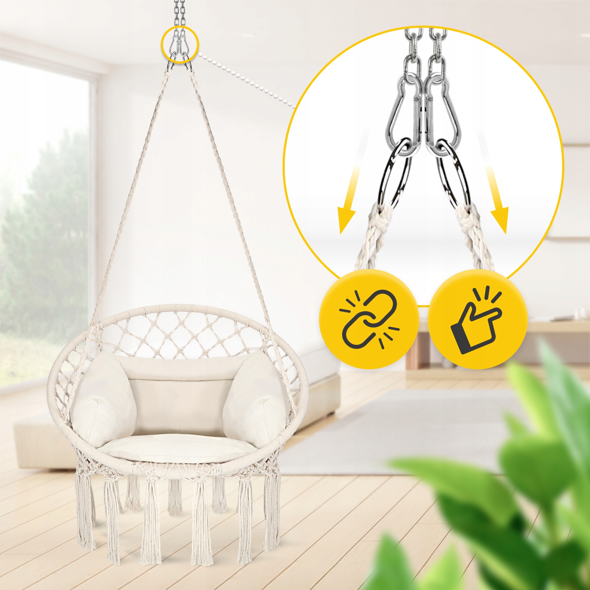 Было сделано из прочной стали, устойчивой к нагрузкам до 250 кг, что позволяет вам безопасно повесить не только классические гамаки или качели, но и подвесные сиденья, такие как кокон, гнездовый аист или подвесные сиденья для детей, сохраняя полную безопасность. Anti -Corrosive будет работать как в помещении, так и на открытом воздухе - например, На беседке, балконе или в саду. Большой диаметр крепления и толстые ручки обеспечивают стабильность в течение многих лет использования.
