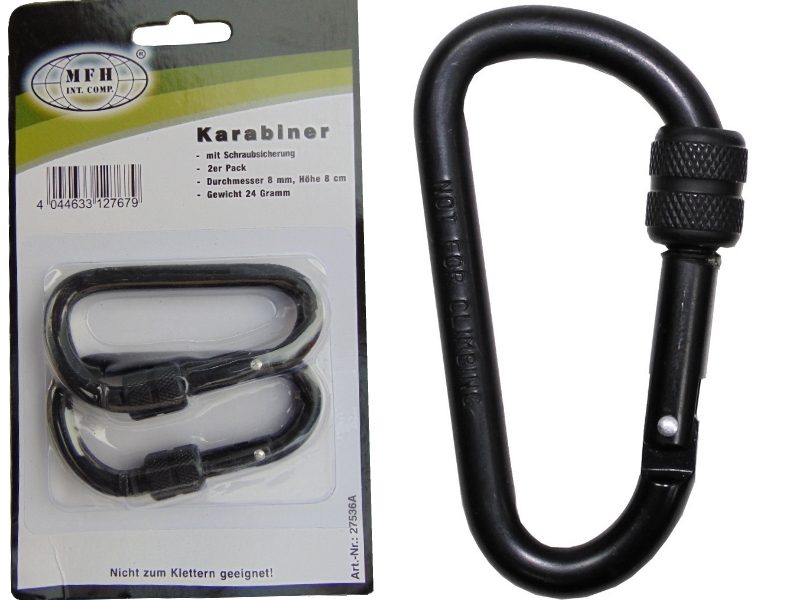 КАРАБИНЫ СТАЛЬНЫЕ С ЗАМКОМ 8 мм x 8 см, ЧЕРНЫЕ