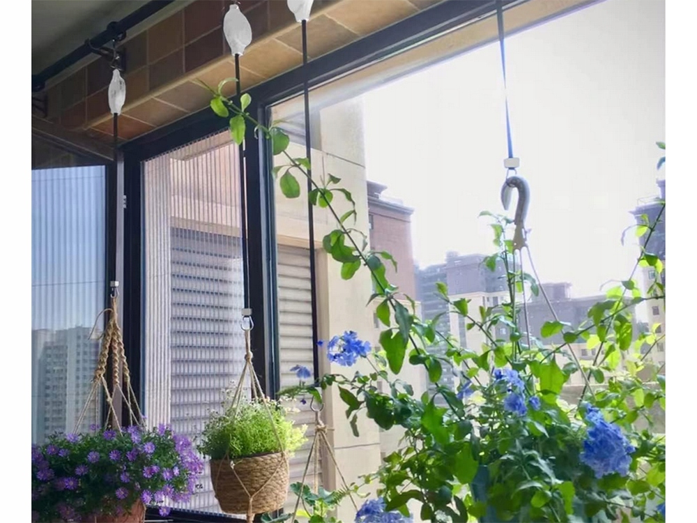 Повесьте горшок с цветами. Если мы хотим поливать цветы, просто потяните горшок вниз. Затем поднимите