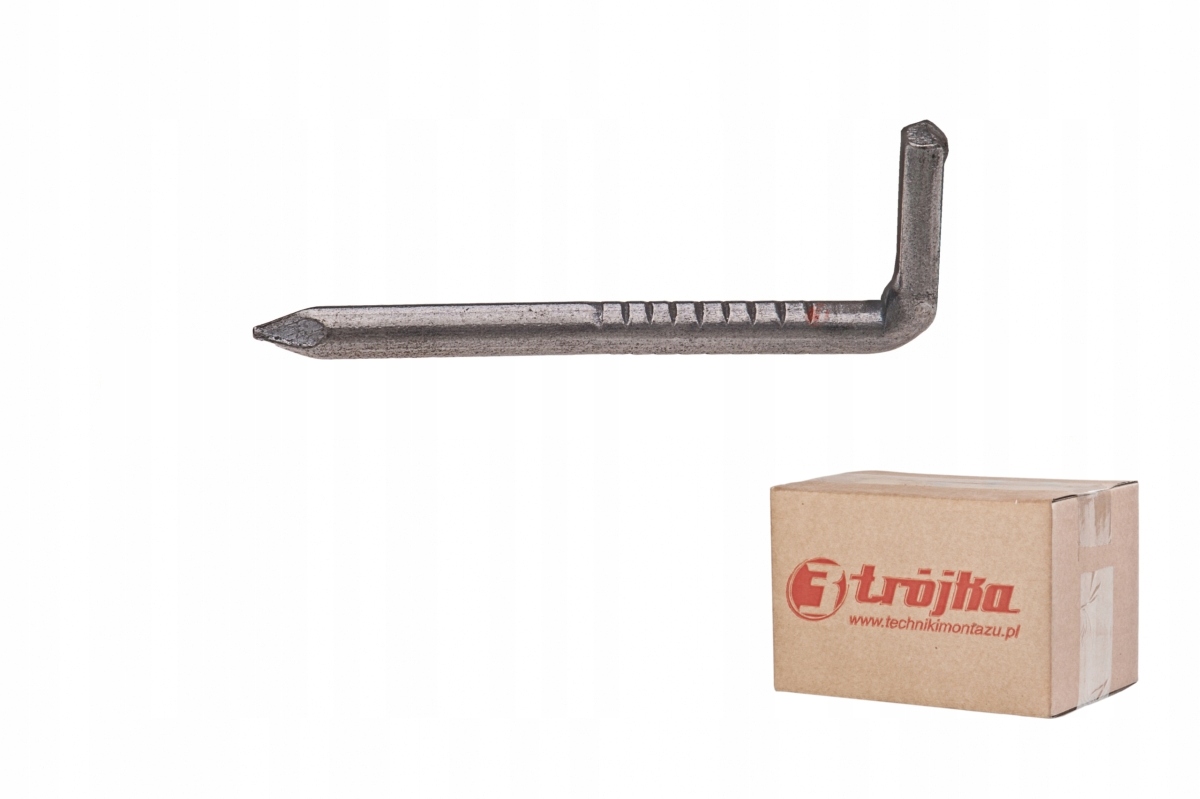 Потолочные гвозди трех изготовлены из жесткого металла, затянувшегося с одной стороны. Гвоздь изготовлена в форме крючка, согнутая часть которого сплющена. Гвоздь, предназначенная для прикрепления материалов с свободной конструкцией, такой как тростник к стенам и деревянные потолки. Соединение сохраняется благодаря силам трения, действующим вдоль оси ногтей, и благодаря жесткости стебля. Ногти сделаны из стальной проволоки высочайшего качества.