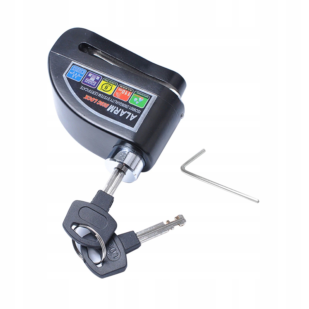 Также возможно использование охраны без включенной сигнализации как штатной замок. В комплект поставки сигнализации входят 2 ключа и шестигранный ключ для замены батарейки. Он водонепроницаем. Стопорный штифт имеет диаметр 6 мм. Замок очень прочный - изготовлен из материалов высочайшего качества