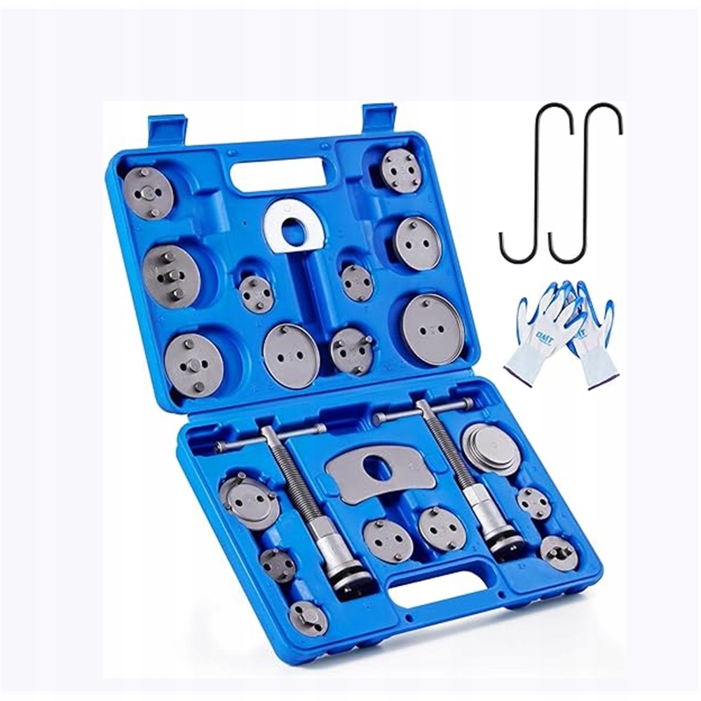 Набор включает в себя два пресса (правый и крутящий левый), две разные формы луча для удаления прессы с помощью терминального седла и 18 адаптеров, адаптированных к размеру тормозных поршней, используемых в большинстве пассажирских автомобилей, произведенных на европейском и азиатском рынке. Щит