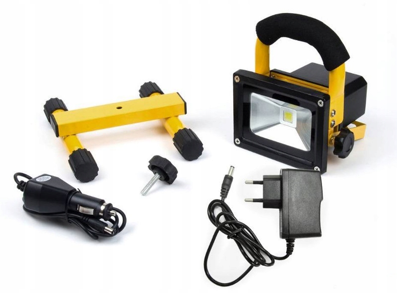 На аукционе мы предлагаем переносной светодиодный прожектор мощностью 10 Вт с аккумулятором 12 В/230 В