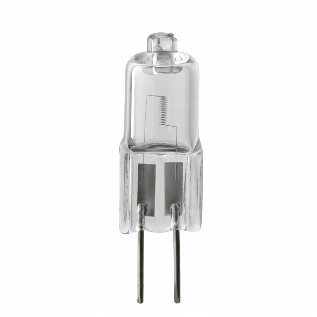 Маленькая галогенная лампочка, используется в небольших осветительных приборах. Она прекрасно подчеркивает цвета освещаемых предметов и производит больше света, чем традиционная лампочка при том же энергопотреблении. Это позволяет галогенному источнику света значительно улучшить качество практически любого осветительного решения. Лампа должна питаться от трансформатора или электронного блока питания, соответствующего ее мощности.