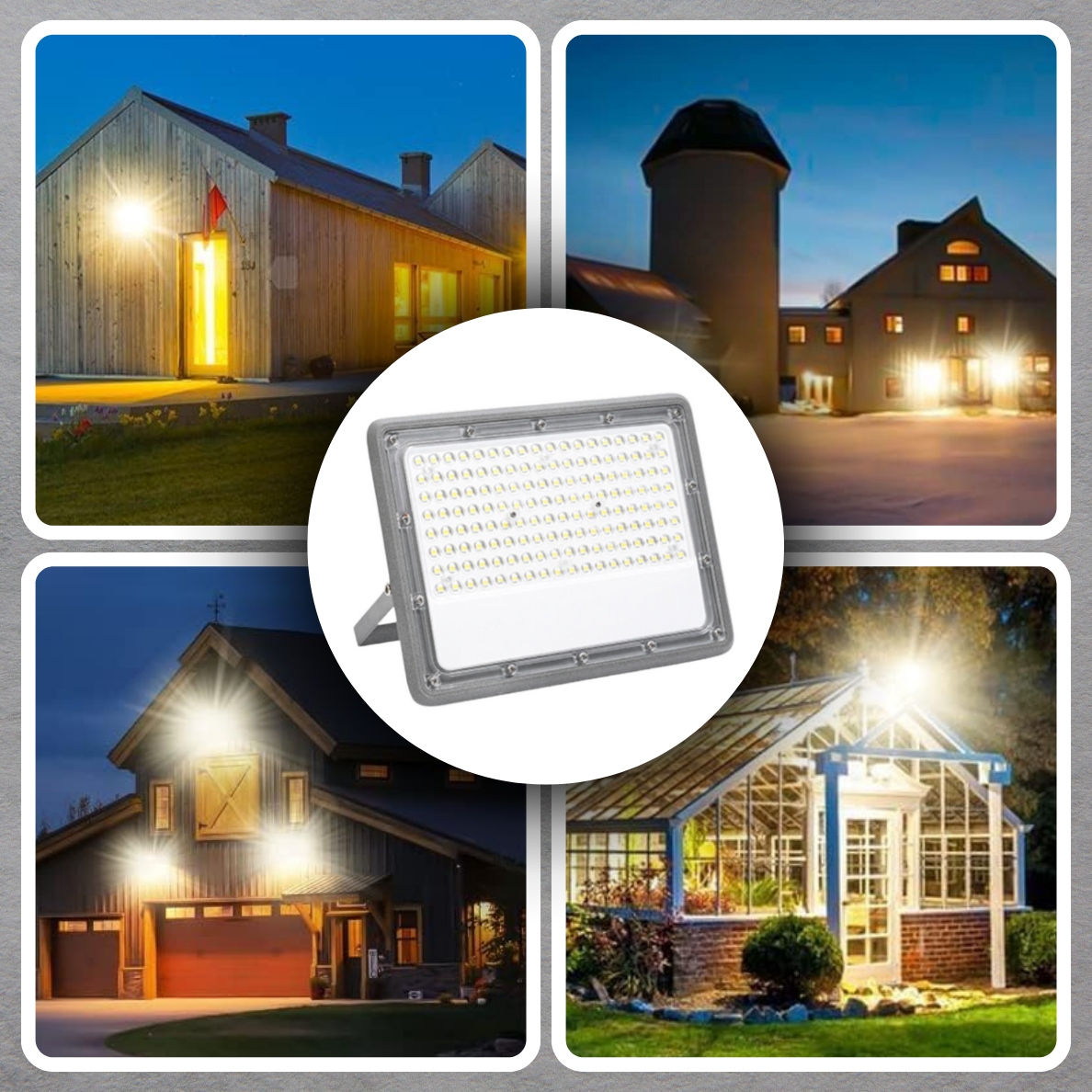 ✅Высокая яркость и эффективность: Благодаря мощности 100Вт и световому потоку 11000 лм светодиодный прожектор обеспечивает сильный и равномерное освещение, которое эффективно осветит как небольшие, так и большие помещения.