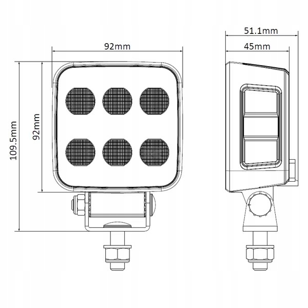 Светодиодная рабочая лампа, квадратная 60 Вт, 6600 лм, 12/24 В, белая, 92x109,5x51,1 мм, рассеянный свет, вилка Deutsch