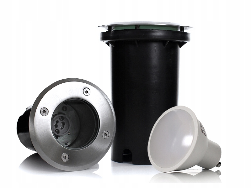 Светильник наружный, наземный, размеры 10x10 см, с цоколем GU10 - 230В + лампочка G10 в комплекте