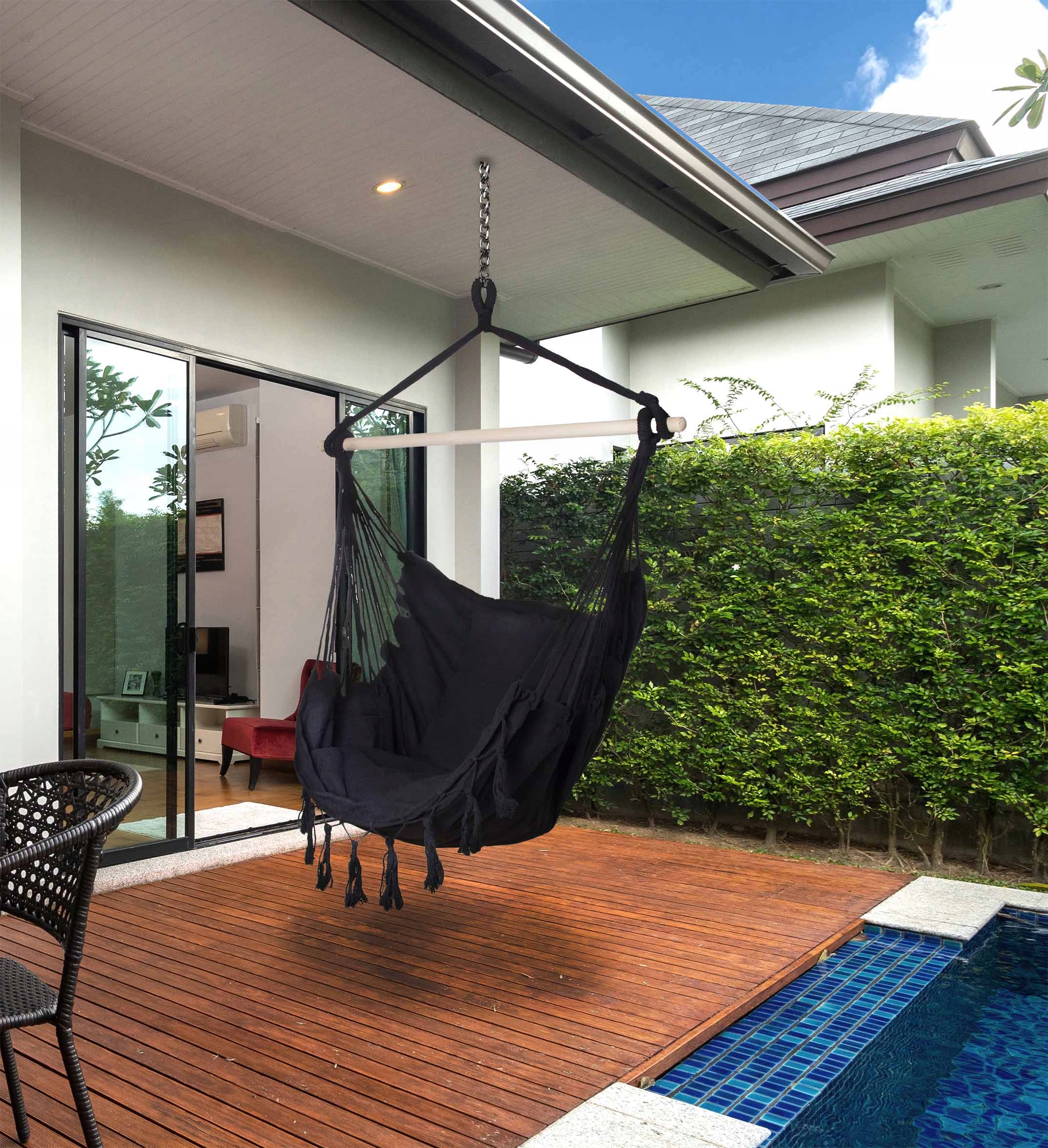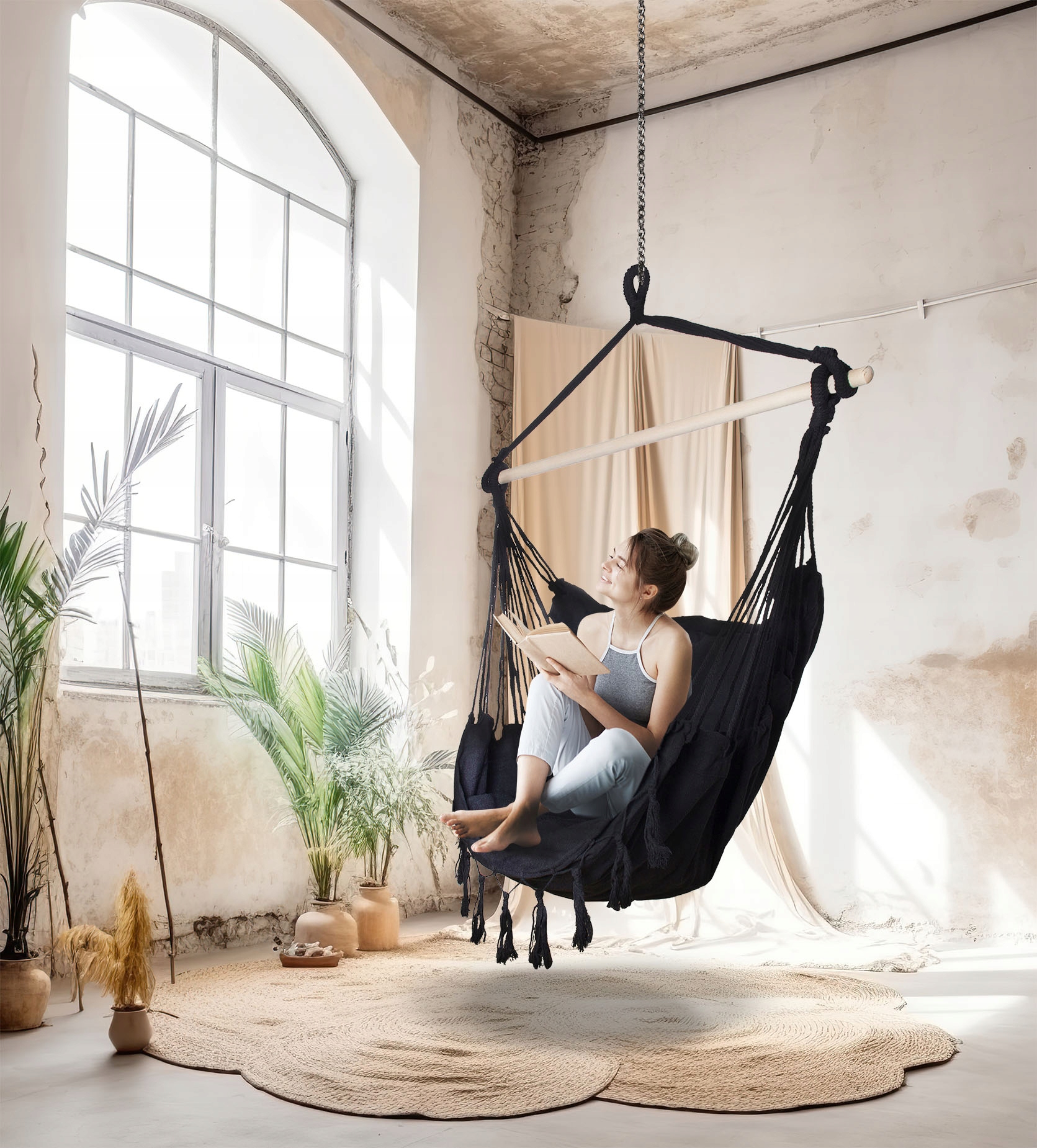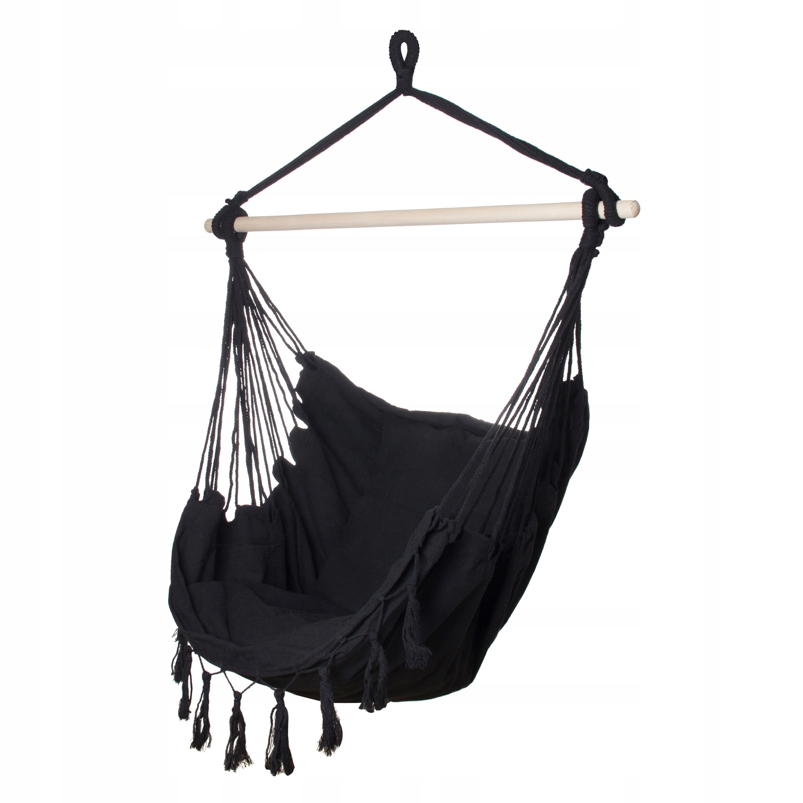 KRZESŁO BRAZYLIJSKIE FOTEL OGRODOWY WISZĄCY HAMAK HUŚTAWKA RODOS 2 CZARNY