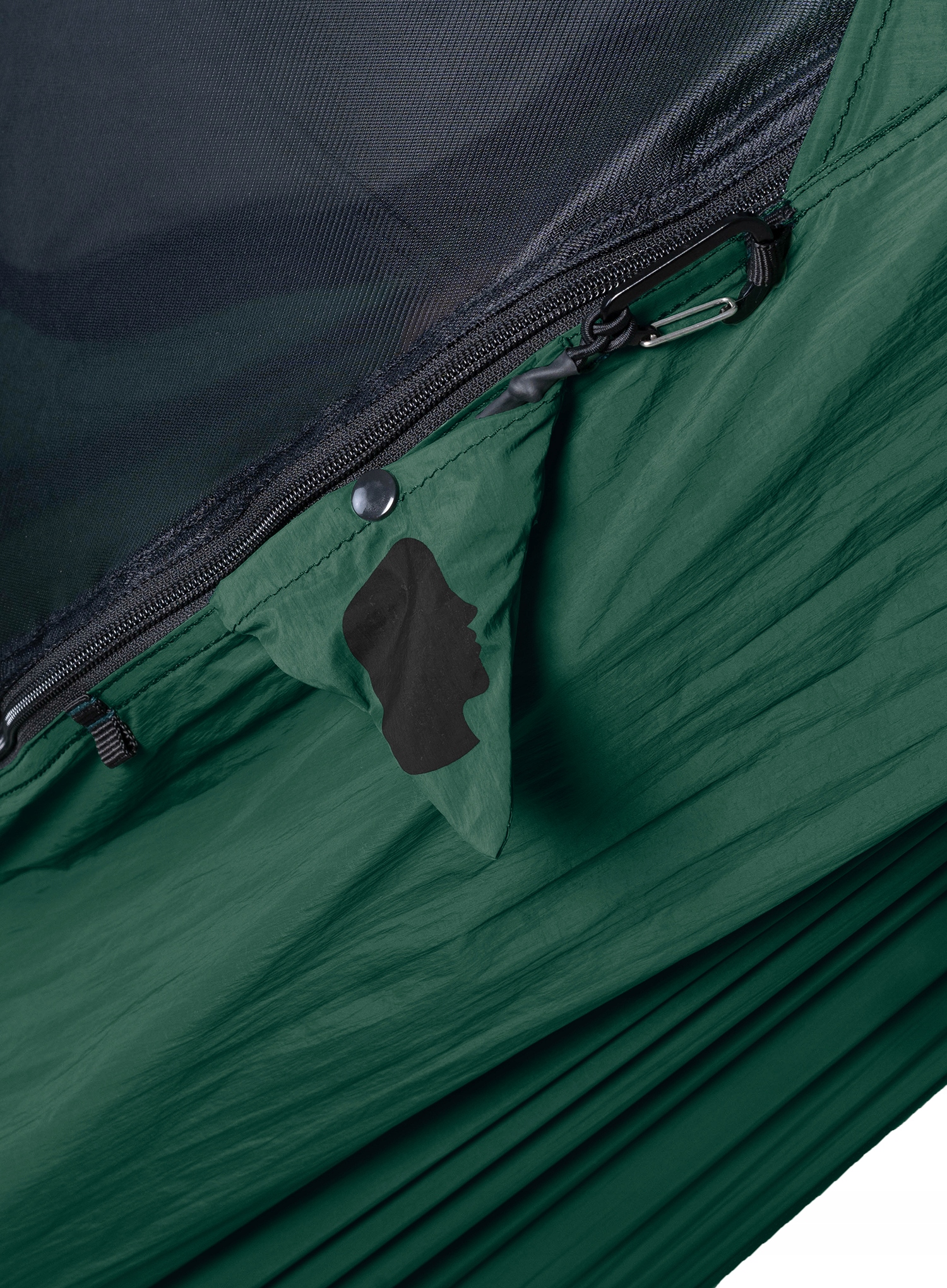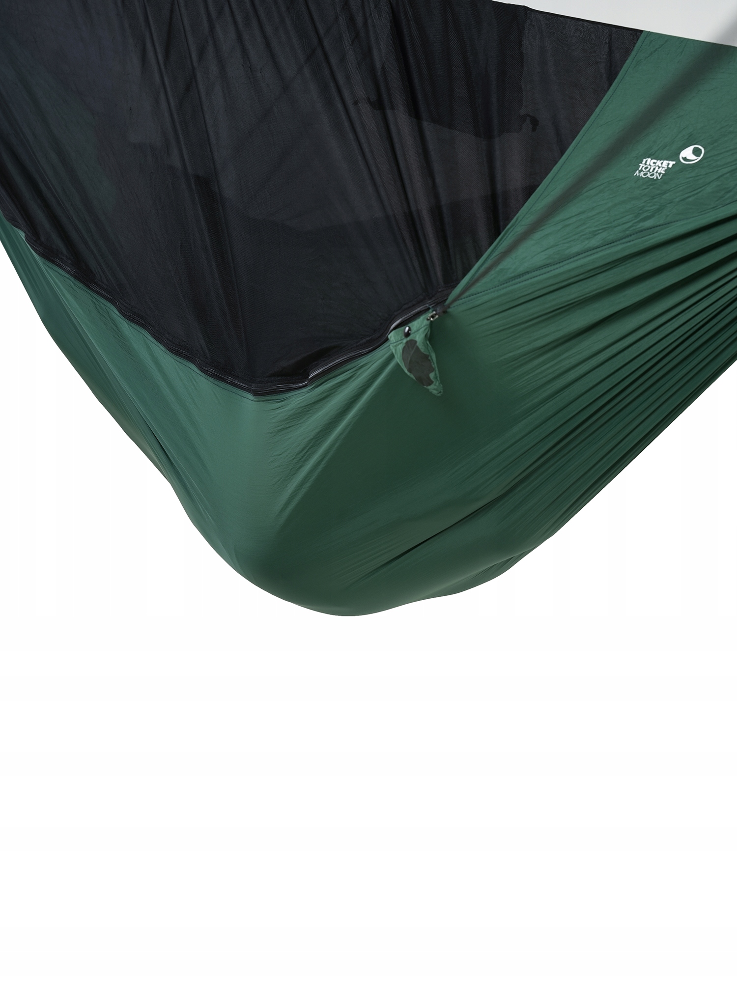 Самый легкий гамак для профессионалов Ticket To The Moon — лесно-зеленый, сертифицирован Oeko-Tex® 100. Благодаря этому при его использовании вы можете быть уверены, что в нем отсутствуют какие-либо химические вещества, вредные для здоровья человека. При этом процесс его производства контролировался на каждом этапе. Эта модель также имеет встроенную защиту от насекомых, которую можно снять, когда она не нужна. Благодаря этому вы получите эффективную защиту от насекомых, сохраняя при этом отличную вентиляцию внутри гамака. Встроенная веревка удерживает гамак в правильном положении и позволяет держать спину прямо, расслабляя его по диагонали. В комплект также входит органайзер, который позволит хранить ваше личное оборудование. Внешние петли позволят вам прикрепить ваше оборудование к гамаку и использовать их в качестве точек крепления.