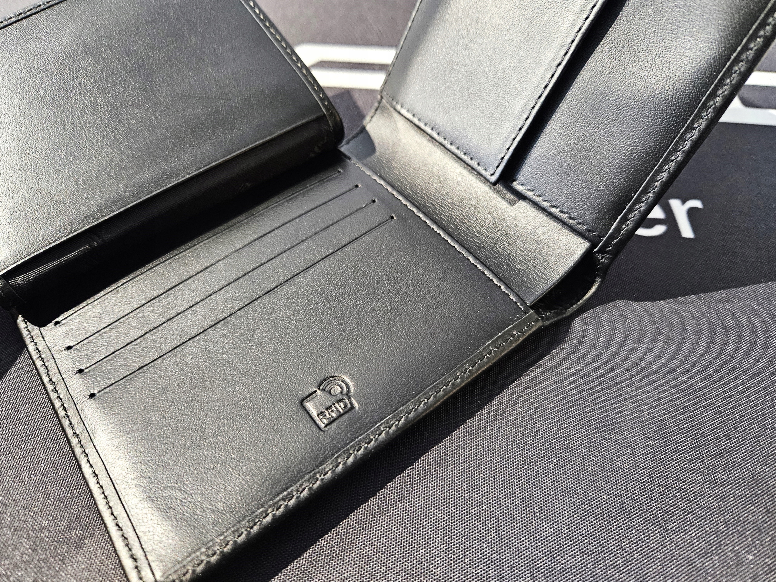 Монеты, банкноты, карты — в кошельке AMG можно хранить наличные и кредитные карты с оптимальной защитой. Помимо двух отделений для купюр, в кошельке также имеется карман для монет на молнии и восемь слотов для карт, а защита RFID блокирует сканирование банковских и кредитных карт, если карты хранятся в закрытом кошельке. В основе защиты лежит специальная накладка, которая также впечатляет своей эстетикой благодаря приглушенному рисунку логотипа AMG. Кошелек AMG из матовой кожи впечатляет элегантным дизайном, закругленным с обеих сторон ромбовидным узором по всей поверхности.