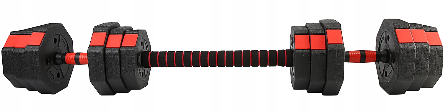Благодаря входящему в комплект разъему гантели можно быстро трансформировать в штангу. Такое уникальное решение позволяет сэкономить место и полностью использовать нагрузку от набора. Мы приобретаем штангу, с помощью которой можно выполнять упражнения, которые невозможно или неудобно выполнять с гантелями.