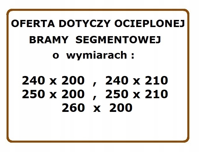 - Цены, приведенные в предложении, применяются к воротам в вышеуказанных размерах и цветах.
