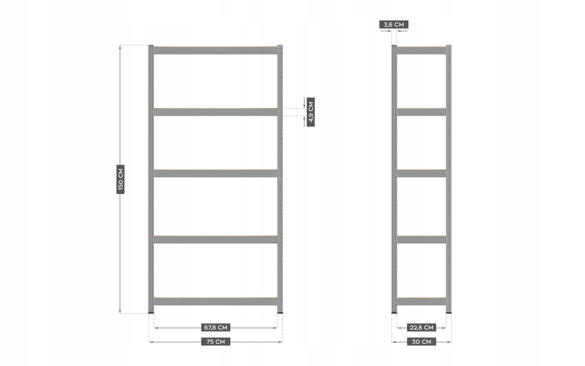 Продуманная конструкция и грамотно подобранные материалы позволяют полке выдерживать очень большие нагрузки. Каждая из пяти полок выдерживает до 180 кг нагрузки. Таким образом, вы можете безопасно хранить на полке инструменты, детали, тяжелые консервы и любые другие тяжелые предметы.