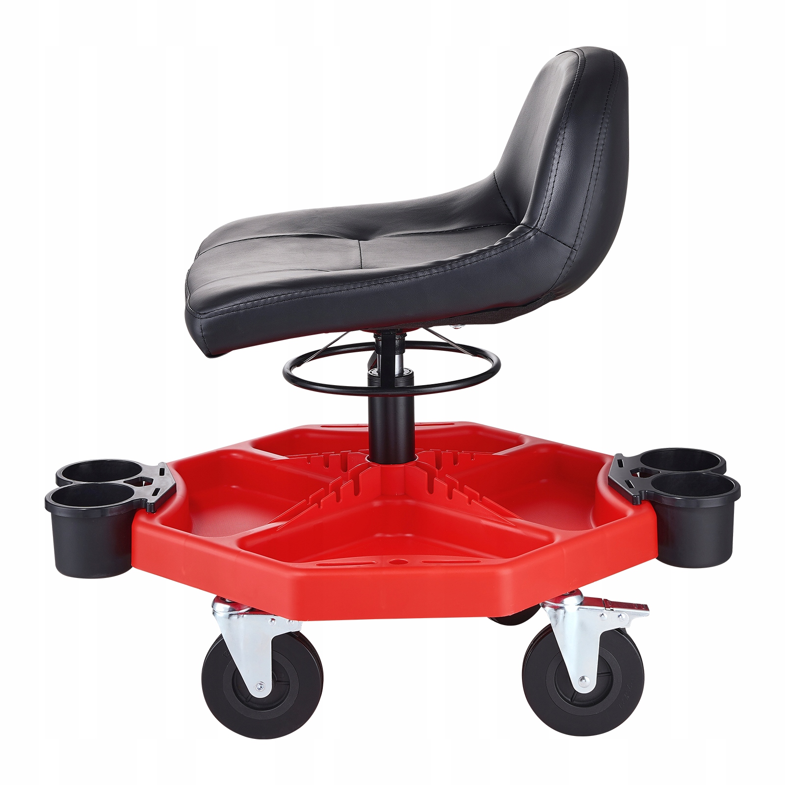 Храните и организуйте ваше оборудование: пластиковый поднос непосредственно под стулом, сегментальный поднос для инструментов гарантирует, что ваше оборудование всегда под рукой. Роторный лоток предоставляет пространство для инструментов, таких как отвертки, ткани из микрофибры, губки и т. Д. У двух из них есть тормозный механизм, который полезен при работе на наклонной дороге. Все колеса изготовлены из прочного материала из ПВХ.