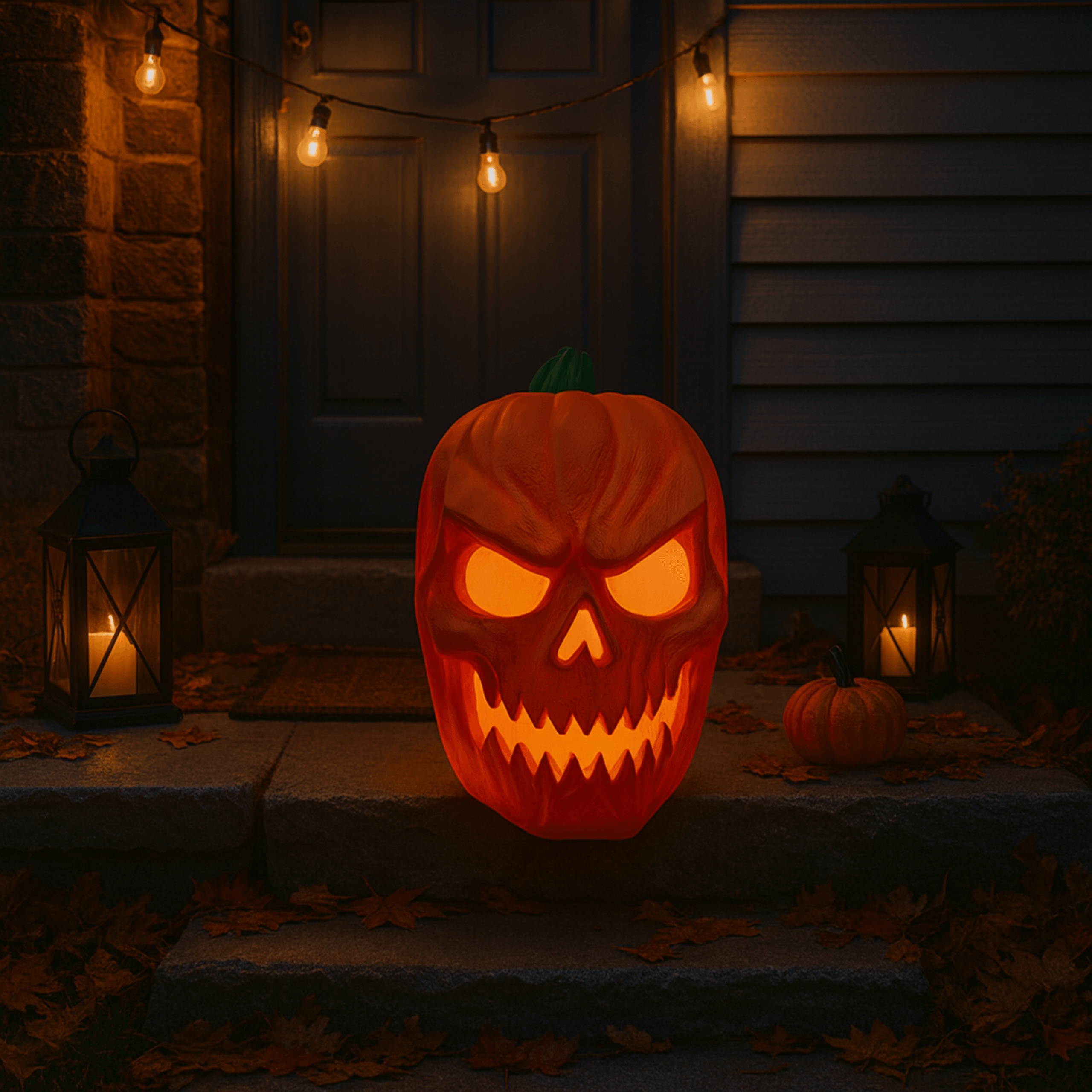 Поверхность имеет необработанную, несовершенную текстуру – это нарочитый хэллоуинский стиль, напоминающий резную тыкву. Материал жесткий и устойчив к случайным ударам при декоративном использовании.