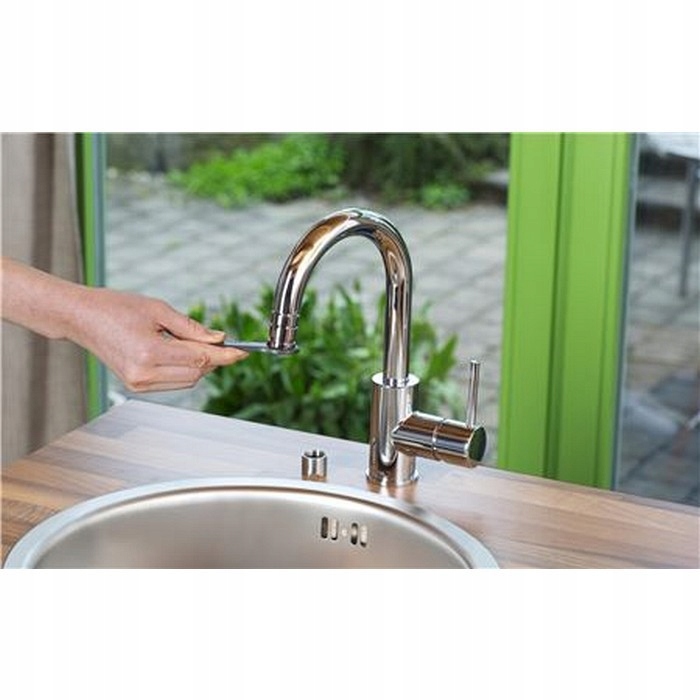 Адаптер для комнатных смесителей можно быстро и легко прикрепить к смесителю на кухне или в ванной. В комплект входит рожковый ключ, обеспечивающий быстрый и удобный монтаж и откручивание резьбового элемента. Адаптер для внутреннего крана подходит ко всем обычным кранам с внутренней резьбой M 24 x 1 и внешней резьбой M 22 x 1.