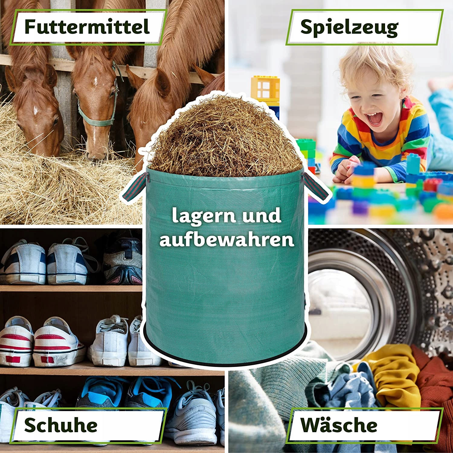Прочная и устойчивая к разрывам ткань из полипропилена (ПП) толщиной 150 г/м² водонепроницаема, безопасна для кожи и нейтральна к грунтовым водам. При правильном хранении пакеты чрезвычайно прочны и идеально подходят для хранения зеленых отходов и скошенной травы в вашем саду.