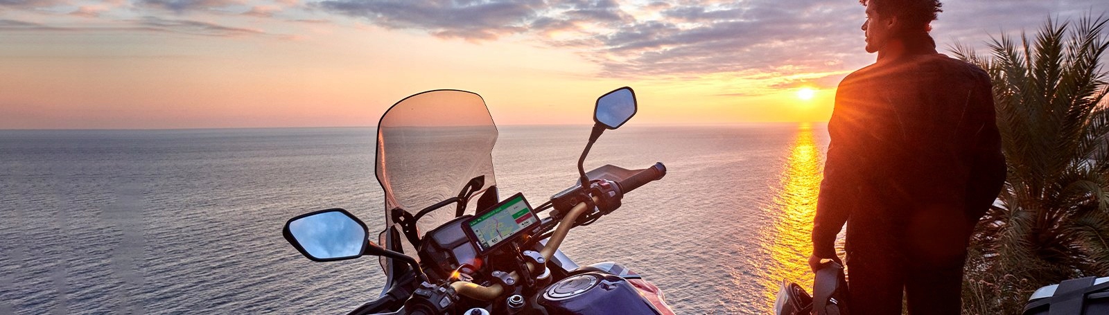 Мы заботимся о безопасности мотоциклистов (1), от возможности совершать звонки через комплект громкой связи до спутниковой связи inReach®.