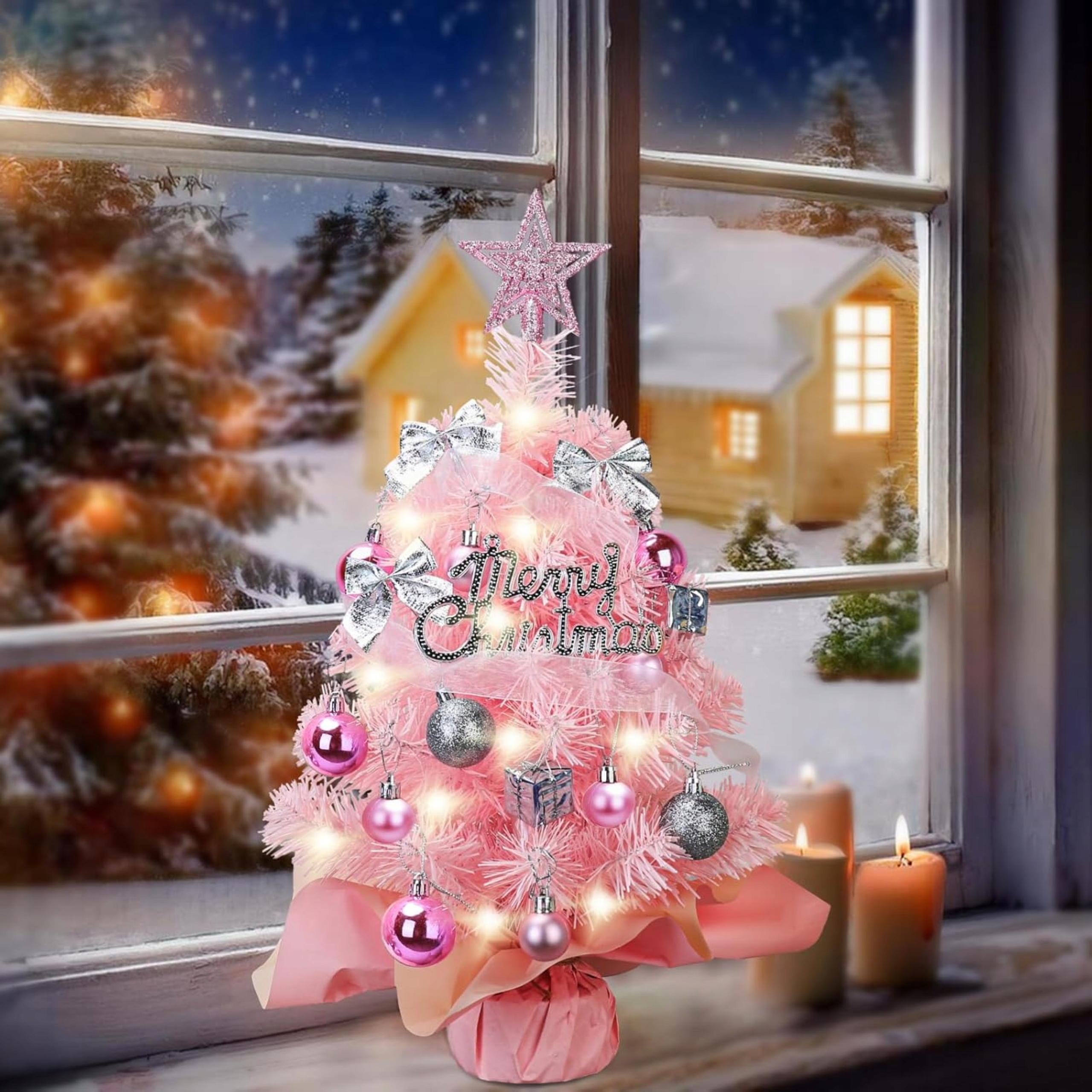 КРАСИВАЯ Рождественская елка Розовые 60 см Мини-светодиодные украшения Рождественское украшение для стола
