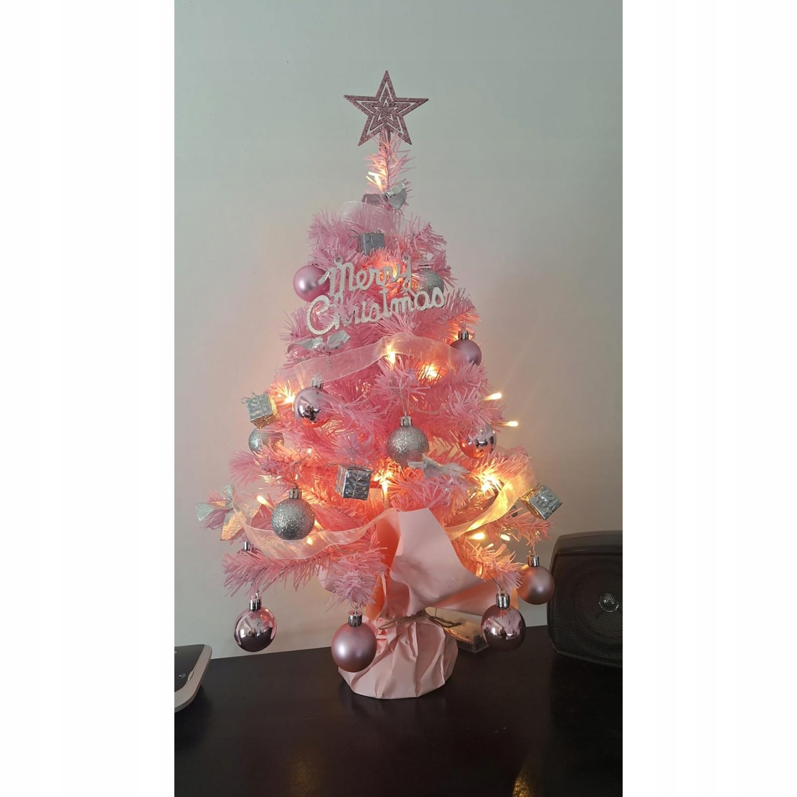 Розовая мини-светодиодная елка 60 см — полный набор украшений