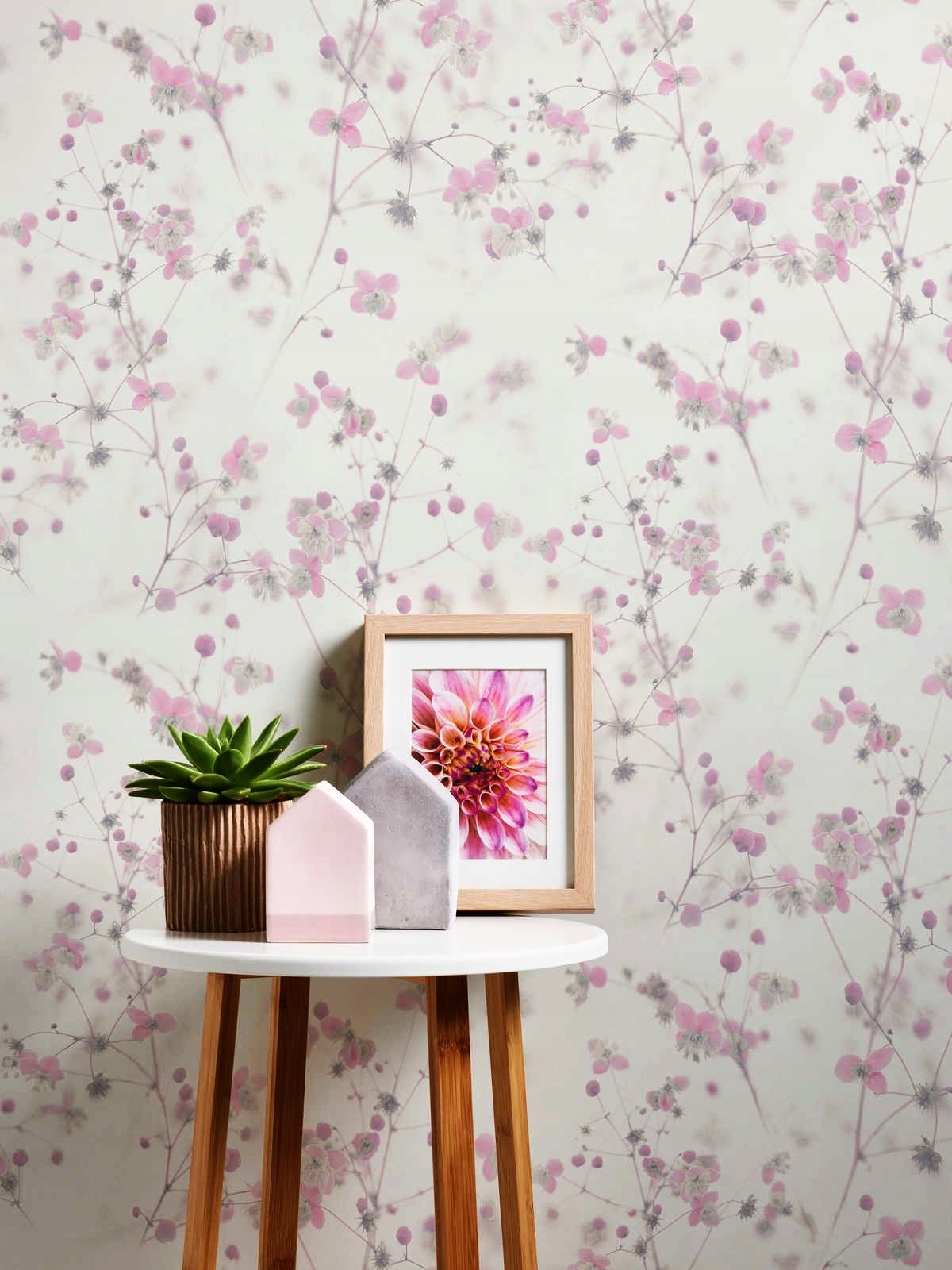Красивый 3D-рисунок- розовые цветы, ветви- обои на нетканом