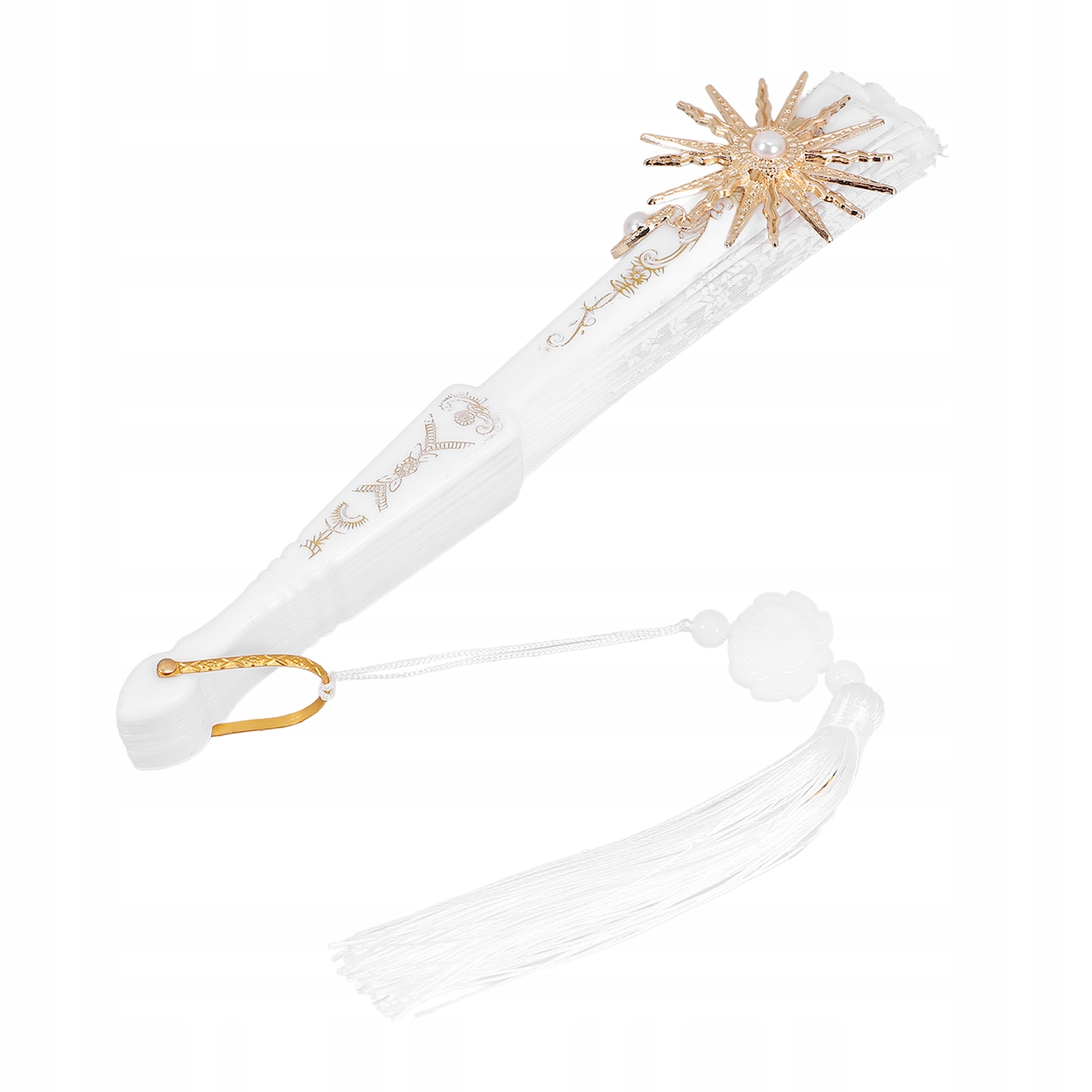 КРАСИВЫЙ КРУЖЕВНОЙ СКЛАДНОЙ ВЕЕР БЕЛЫЙ ДЛЯ ВЕЧЕРИНОК И КОСПЛЕЯ