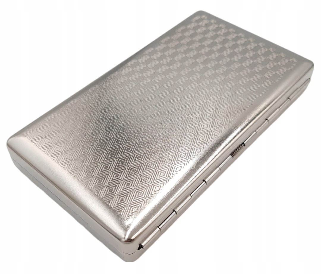 Предложение распространяется на портсигар, изображенный на фотографиях. Портсигар вмещает 20 тонких сигарет. У него есть лапки, благодаря которым сигареты удерживаются на месте и не летают при переноске портсигара. Это металл. Размеры портсигара 7х12,5х1,7 см.