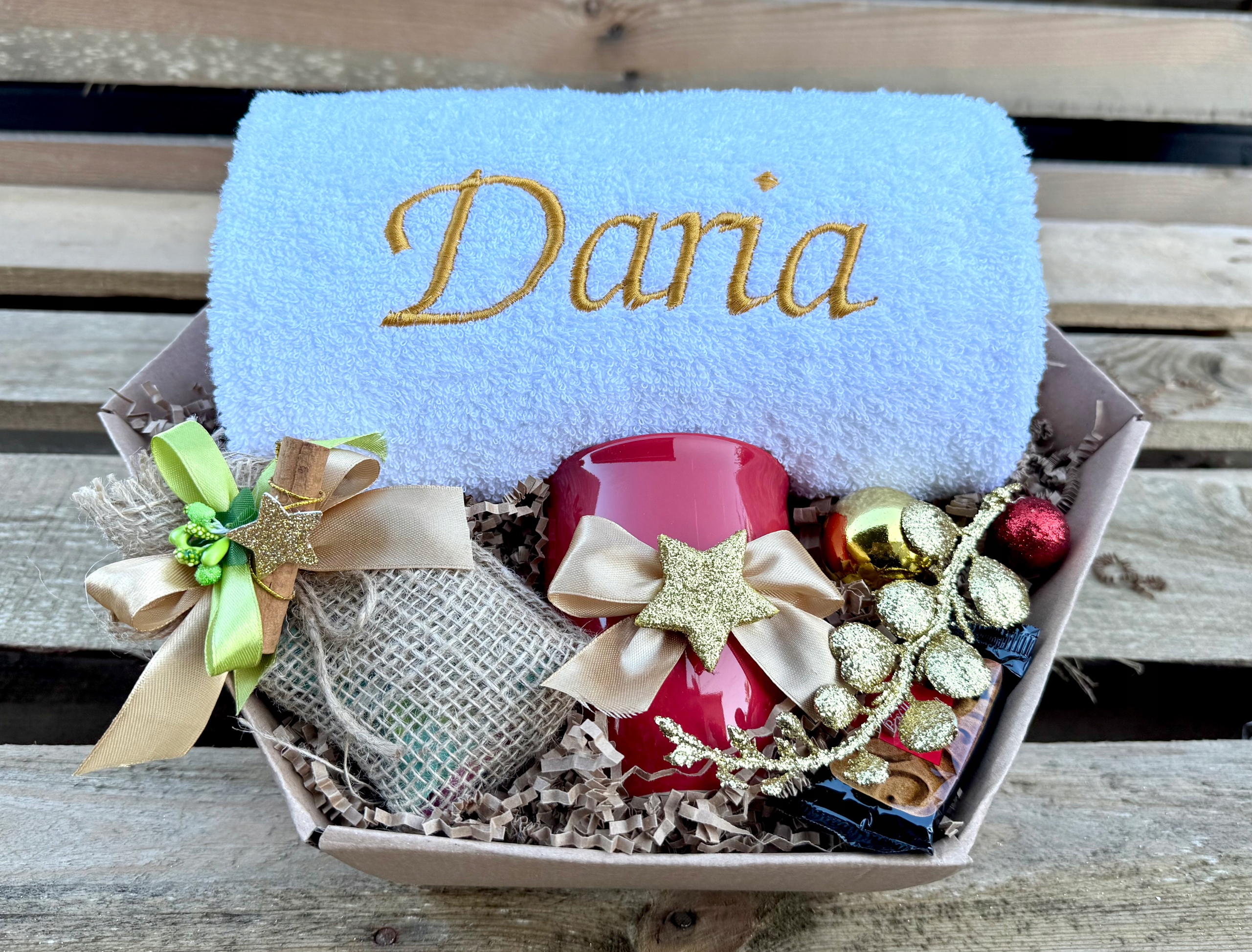 Красивый БОЛЬШОЙ рождественский подарок. Подарочная корзина для начальника. Полотенце с вышивкой