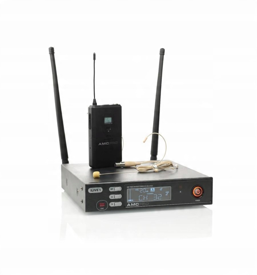 Гарнитура iLive1 — это полноценная беспроводная микрофонная система, поддерживающая 32 канала. Автоматическая синхронизация каналов и автоматический выбор частоты. В комплект входят приемник, поясной передатчик, микрофон-гарнитура, блок питания и кабель jack/jack. Эти комплекты идеально подходят для театров и конференц-залов.