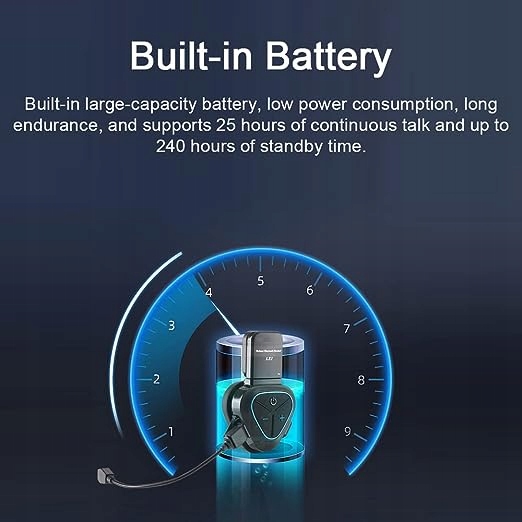 Встроенный аккумулятор большой емкости, низкое энергопотребление, длительный срок службы и поддержка 25 часов непрерывного разговора и до 240 часов в режиме ожидания.Встроенный аккумулятор. б>р>