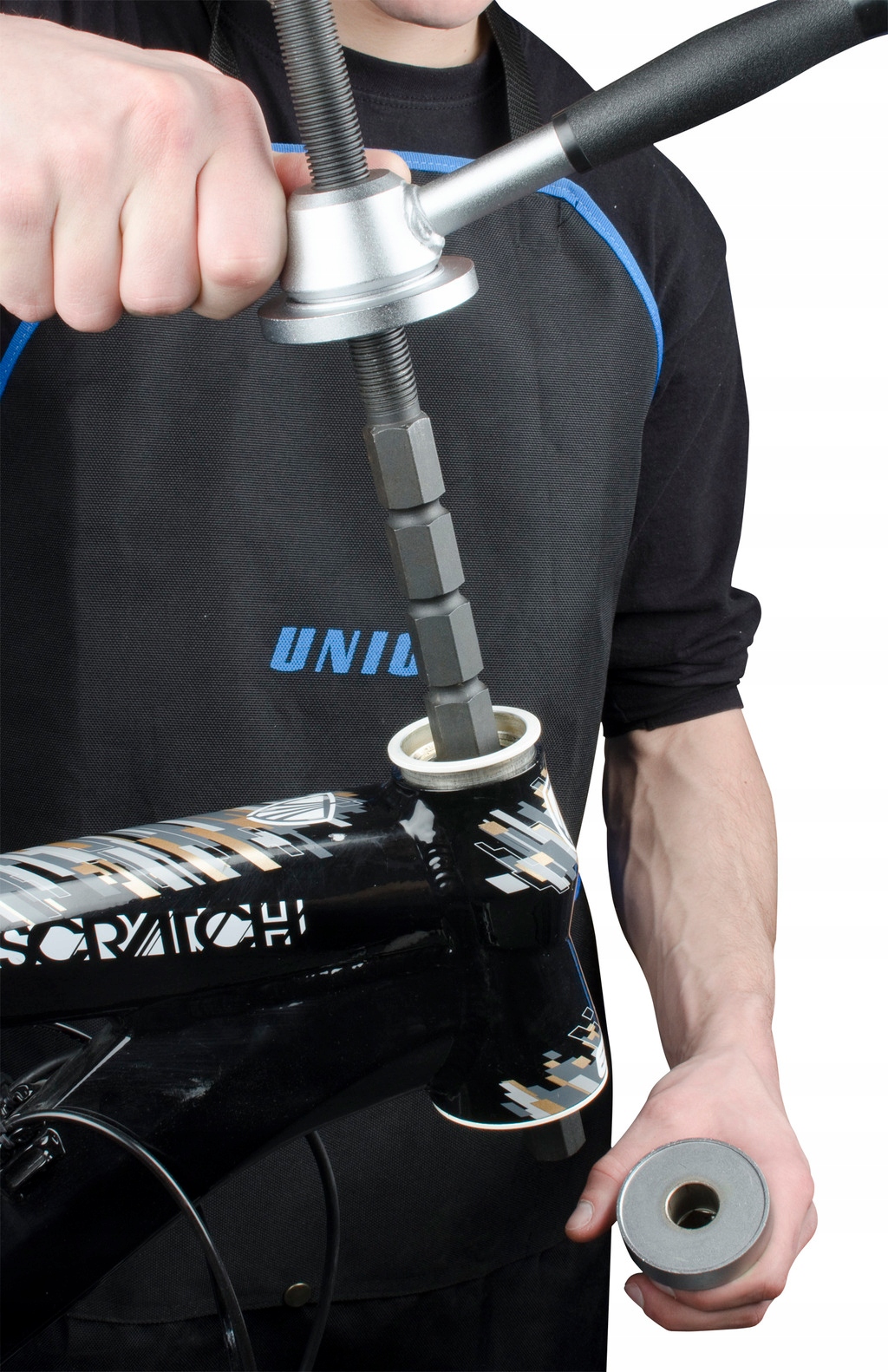 - Инструмент позволяет устанавливать 1", 1,1/8", 1,1/4" и 1,1/ 2 гарнитуры» в рулевой трубе.