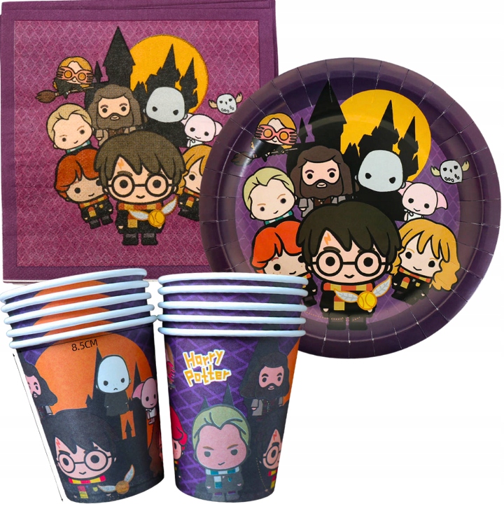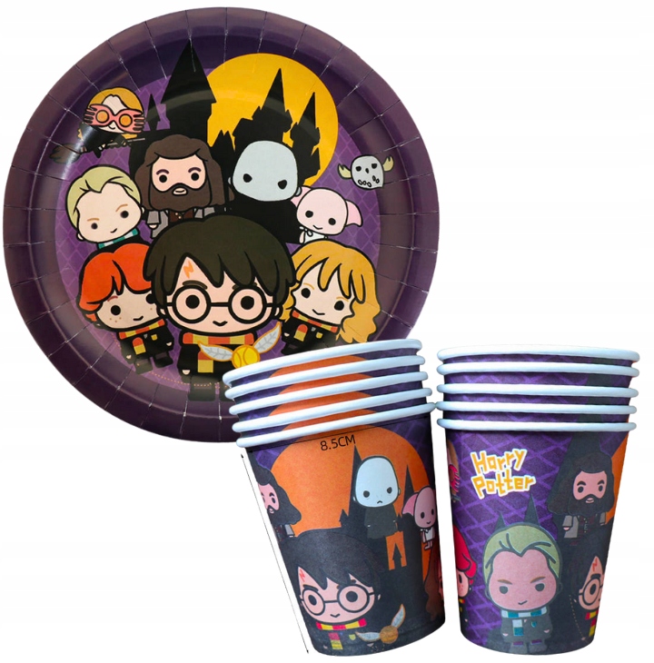Гарри Поттер, набор: чашки + тарелки + салфетки h1> Набор включает в себя: 10 тарелок + 10 чашек + 20 шт. Салфетки с мотивом Гарри Поттера.