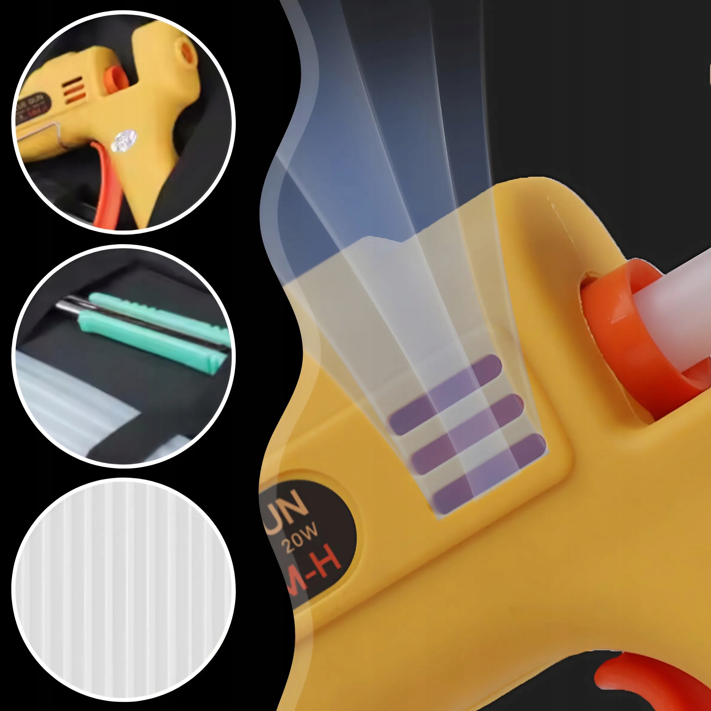 благодаря 20W Power пистолет нагревает клей всего за 4 минуты, что позволяет быстро и точный склеивание различных материалов.