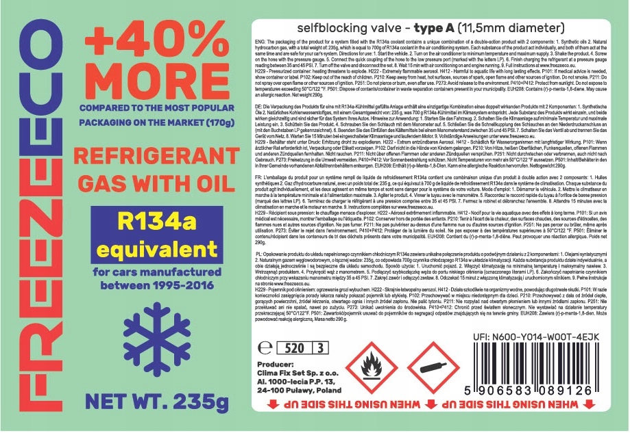FreezeEco R134a емкостью 235 г — эффективный и безопасный хладагент, обеспечивающий оптимальную работу воздуха системы кондиционирования вашего автомобиля