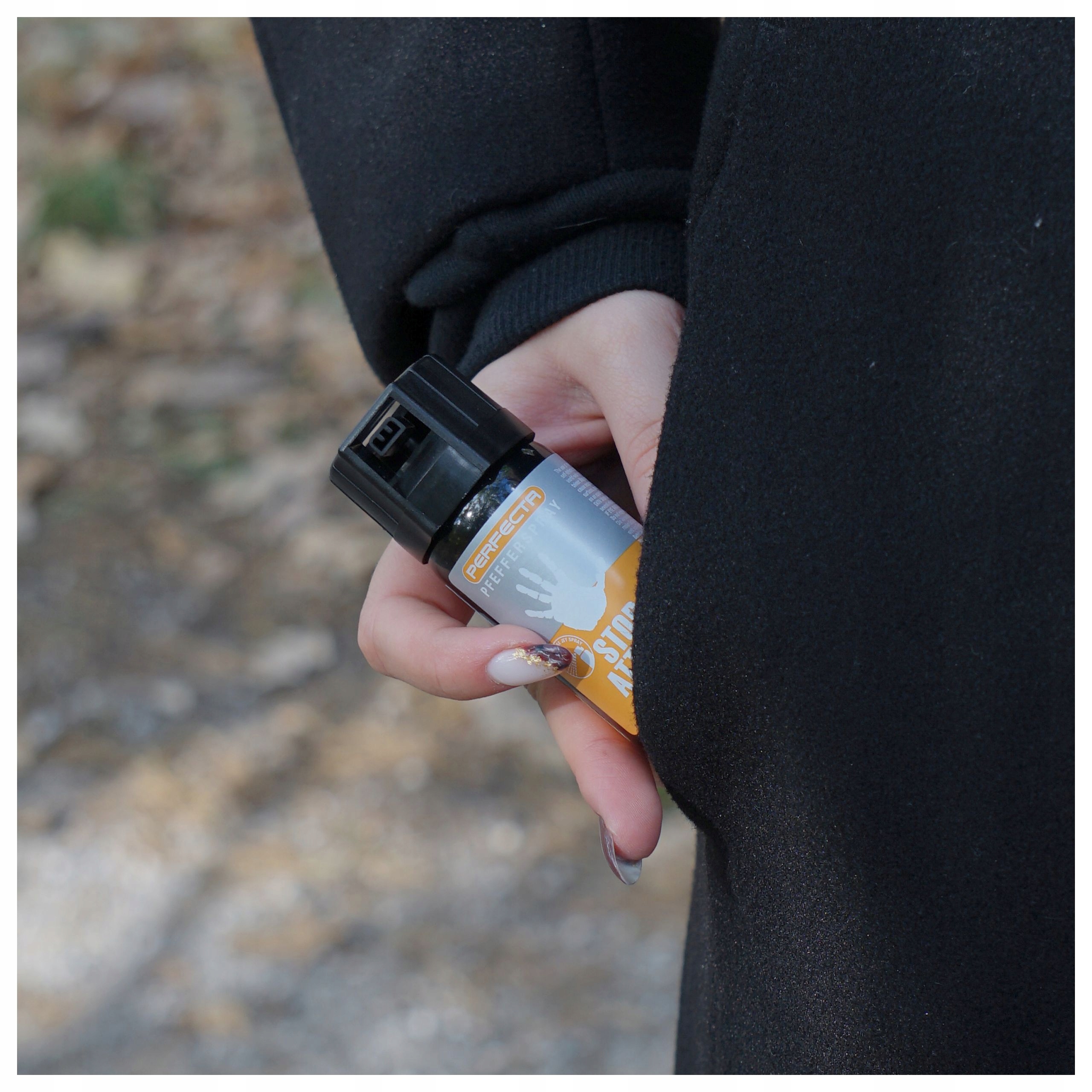 Pepper Gas Perfecta Stop Attack отличается небольшими размерами, что позволяет безопасно спрячьте его в карман, рюкзак или сумочку, чтобы он всегда был под рукой в ​​случае необходимости. Он также действует на опасных животных и людей, находящихся под воздействием алкоголя и наркотиков.