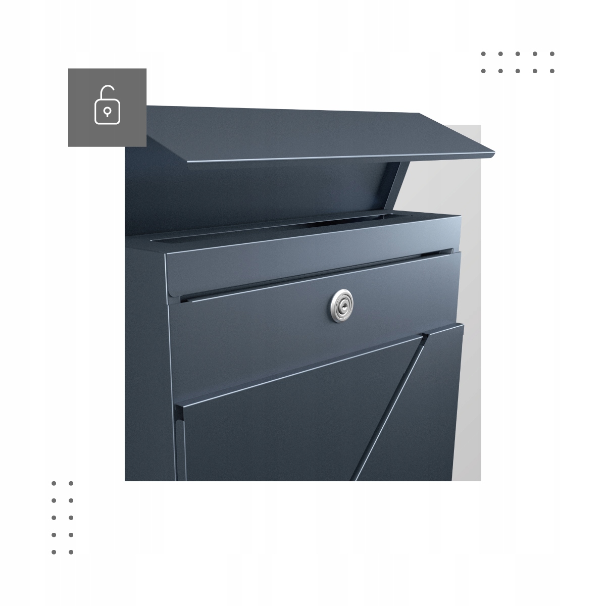 Замок спрятан под верхней крышкой, поэтому он не заметен, но остается удобным для пользователя. Ключевой замок защищает корреспонденцию от посторонних лиц.