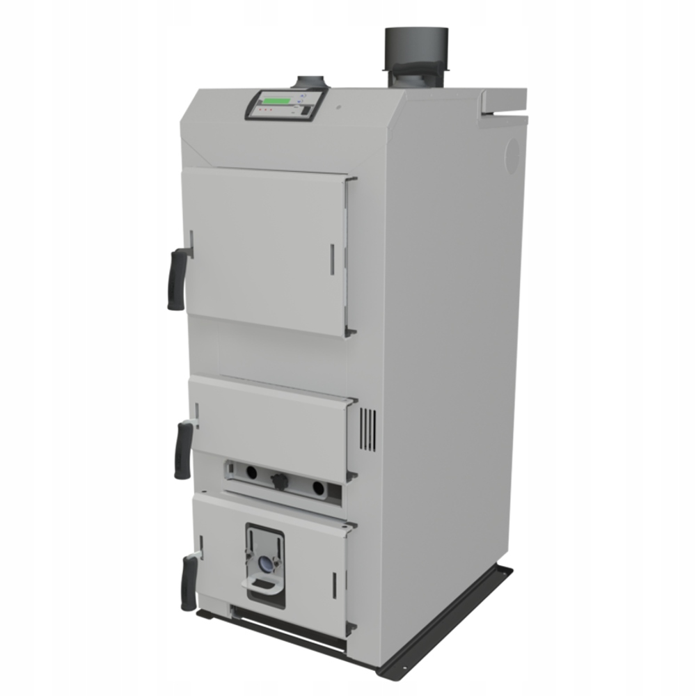 Эко Вуд - это котел, вырабатывающий древесный газ, который сжигается в нем. В этом устройстве используется процесс пиролиза – оно сжигает газы, образующиеся в результате термического разложения древесины с небольшим количеством кислорода. Eko Wood – газификационный котел, наиболее эффективный при сжигании древесины влажностью 12 – 20%. Устройство оснащено контроллером, поддерживающим два насоса и вытяжной вентилятор. Котел в соответствии с действующими правилами должен быть подключен к накопительному баку. Буферная емкость на мощность котла 21 кВт составляет 900 л