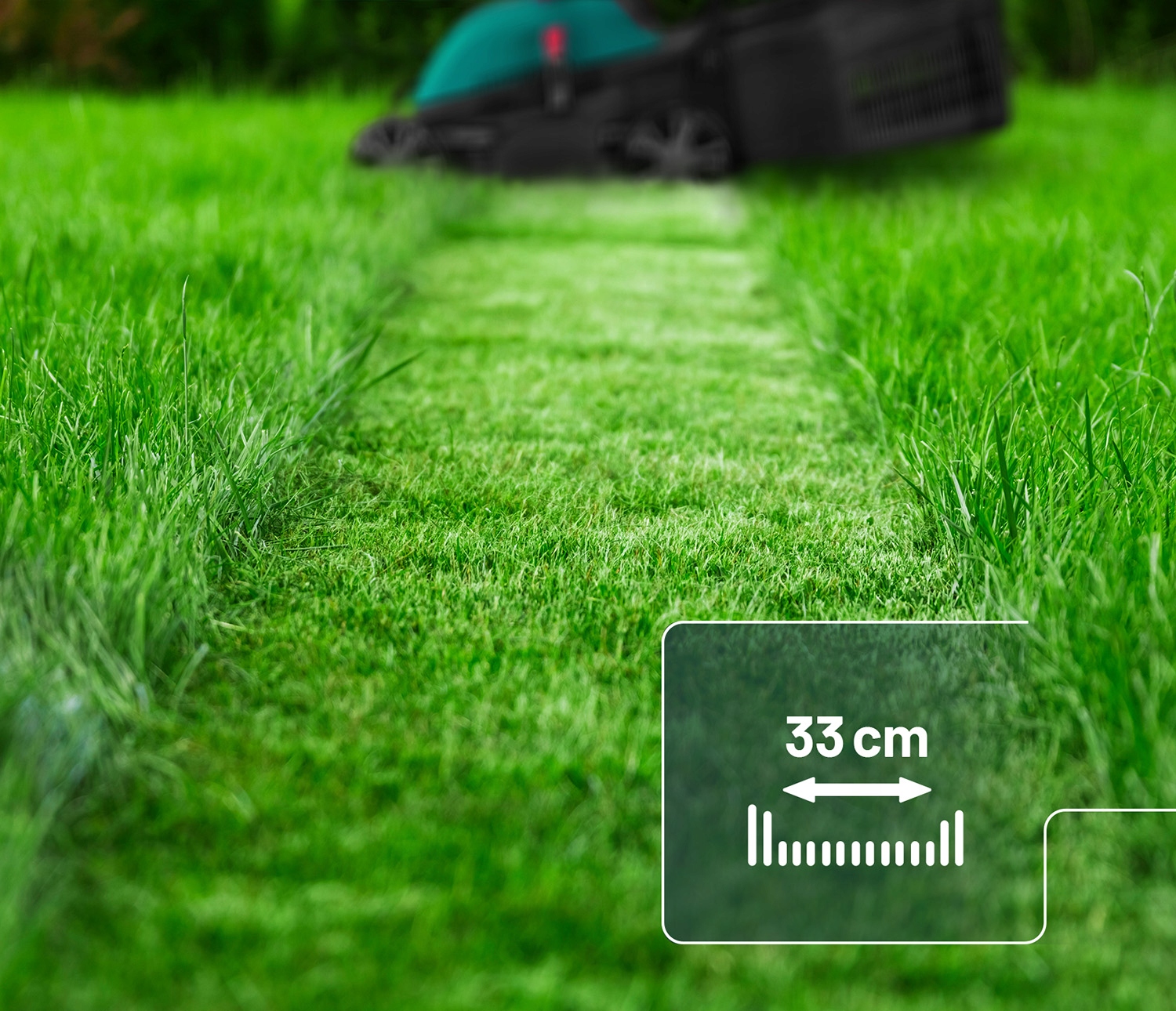 ✅ до 33 см. Работая ширина! Большие поверхности по сравнению с другими, меньшие модели на рынке > Используется Cut-to-Edge - идеальная обрезка травы на краях газонов или тротуаров без дополнительных инструментов. и средние сады