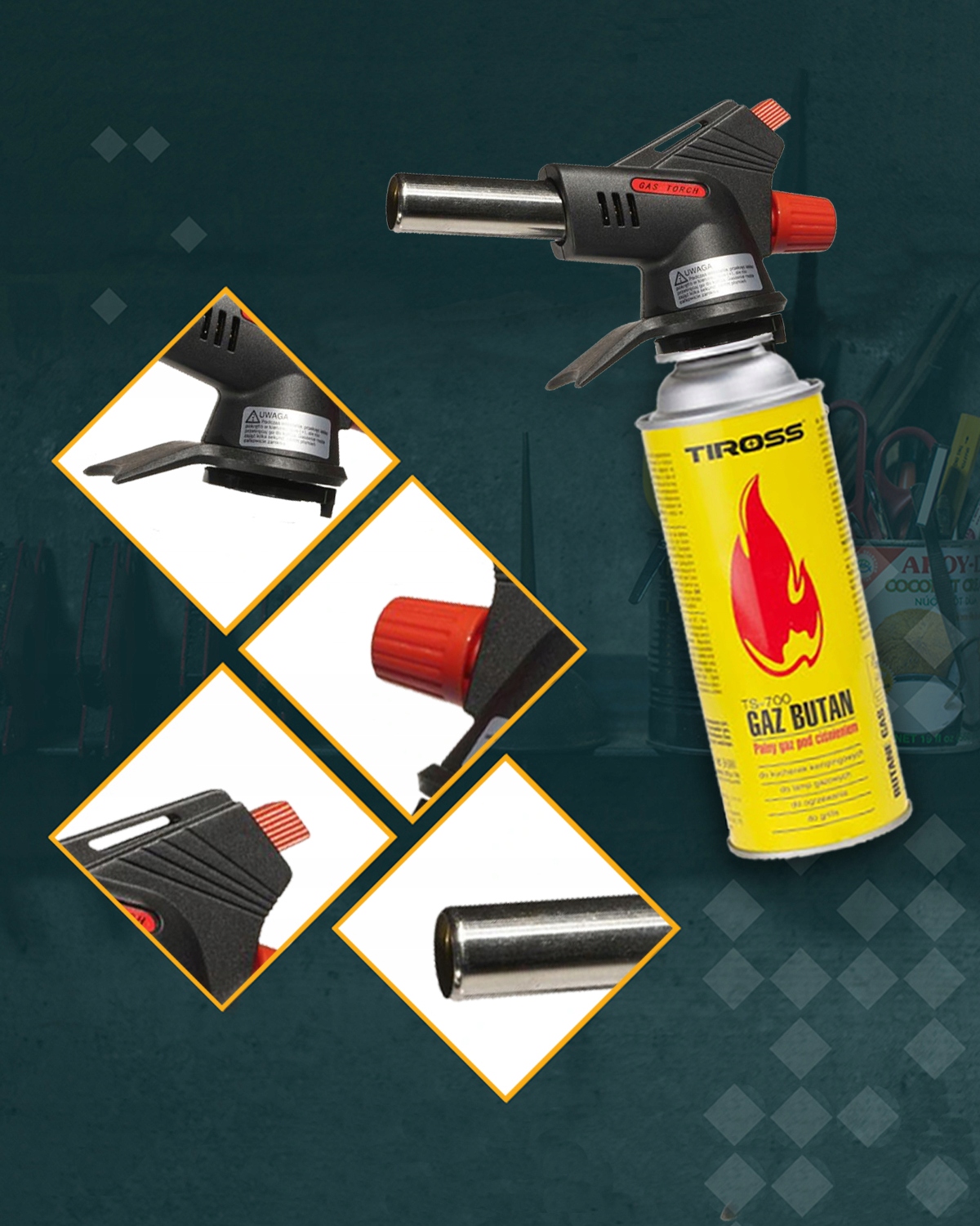 ➡️Газовый паяльник TIROSS мощностью 1000Вт оснащен пьезорозжигом, металлическим клапаном и ручкой регулировки силы пламени газового картриджа.