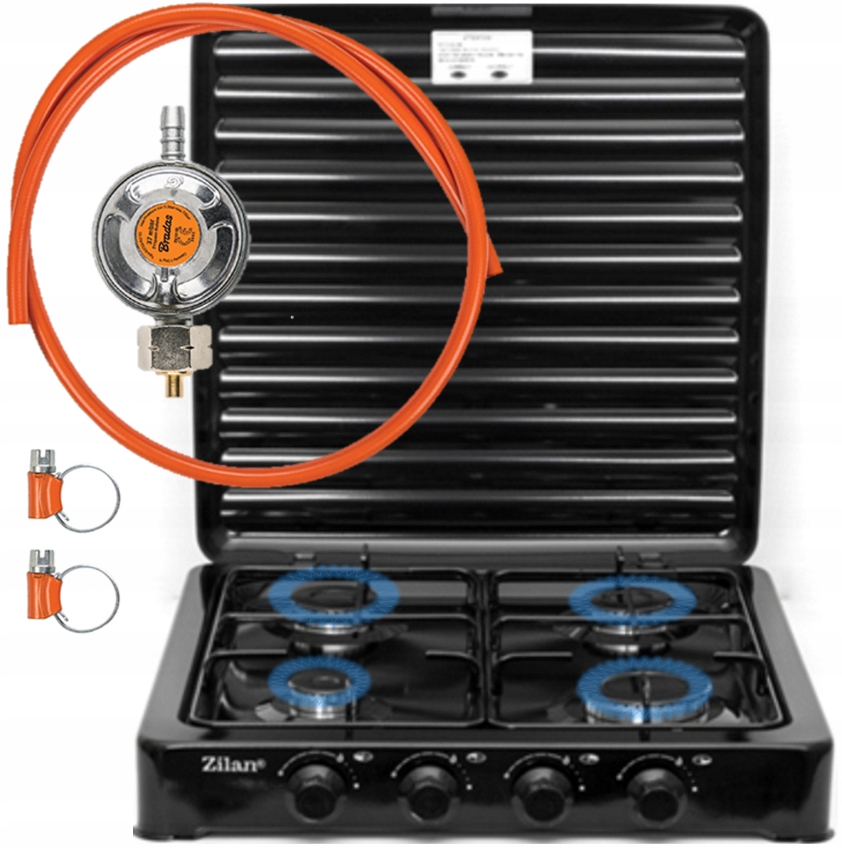 ГАЗОВАЯ ПЛИТА 4 ГОРЕЛКИ ПОРТАТИВНАЯ + ШЛАНГ + РЕДУКТОР