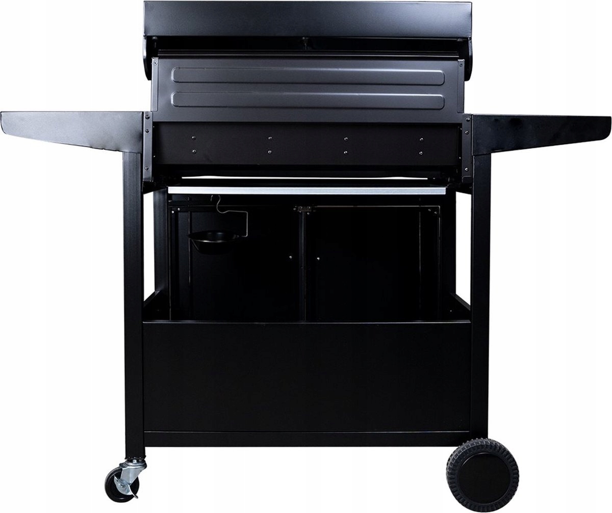 Газовый гриль можно легко передвигать, поскольку он имеет два фиксированных колеса с одной стороны и два поворотных колеса. на другой стороне . В устойчивом нижнем шкафу есть место для газового баллона и инструментов для гриля, а спереди даже имеется открывалка для бутылок.