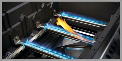 Газовый гриль Наполеон Rogue 365 с двумя стандартными трубчатыми горелками из нержавеющей стали очень быстро нагреет поверхность чугунных решеток , не оставляя более холодных мест. Между конфорками и решетками расположены ароматизаторы из нержавеющей стали, задачей которых является, помимо прочего, защита конфорок от вредного воздействия капающего жира, который может попасть в отверстия. Вы можете зажечь конфорки с помощью системы Jetfire, которая почти сразу же зажжет каждую из них по отдельности, и с помощью двух ручек точно установить мощность конфорок.