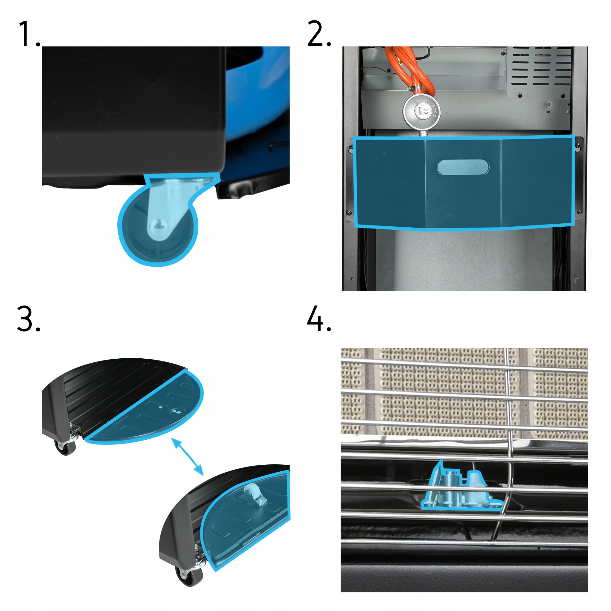 3️⃣ Складная подставка для баллона с колесиком - обеспечивает устойчивость установленного баллона.