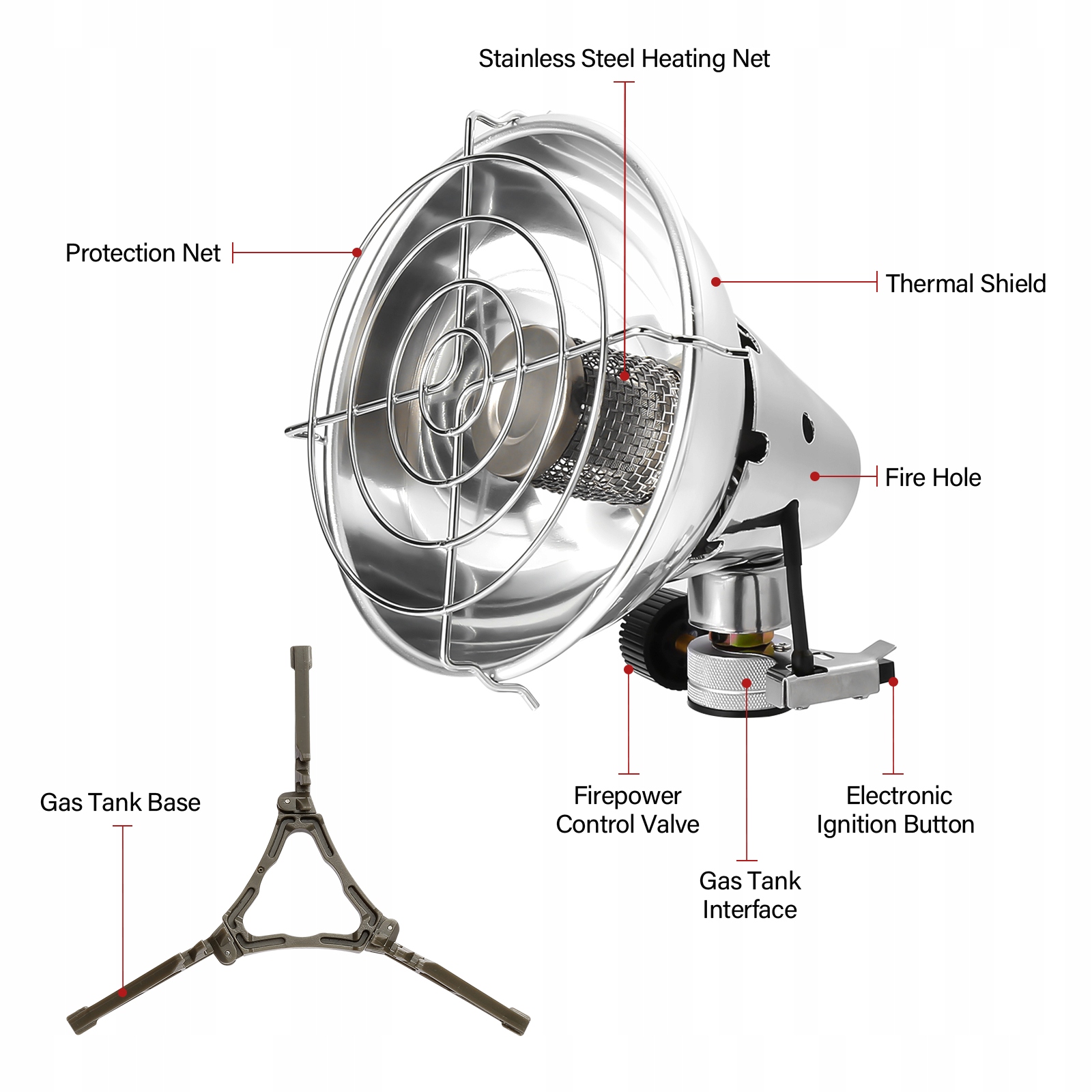 Этот обогреватель работает на газах, очень удобен в использовании. Он легкий и портативный, подходит для поездок на природу.