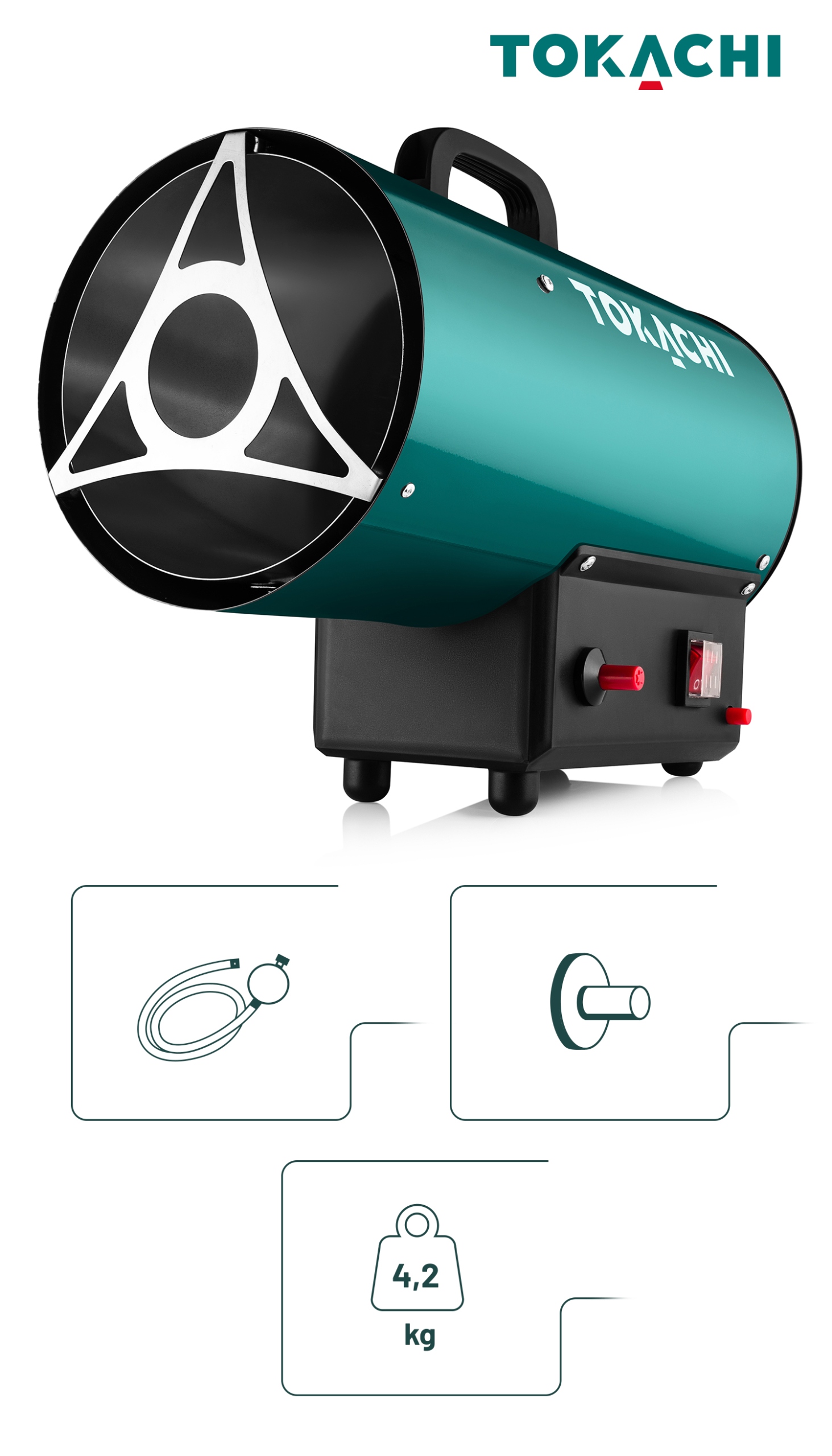 БОЛЬШОЙ ПОТОК ВОЗДУХА | НИЗКОЕ СГОРАНИЕ | КОМПАКТНЫЙ КОРПУС | СТАЛЬ, ПОКРАШЕННАЯ ЖАРОСТОЙКОЙ КРАСКОЙ | ШЛАНГ И ПЕРЕХОДНИК В КОМПЛЕКТЕ