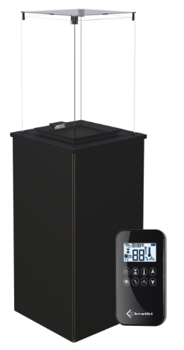 PATIO MINI работает на сжиженном газе из баллона, спрятанного в корпусе. Пламя заключено в стеклянную камеру, которая защищает нас от прямого контакта с огнем. Это позволяет любоваться игрой пламени под полным контролем. Нижняя часть корпуса устройства изготовлена из стали, покрыта порошковой краской. Нижняя часть корпуса устройства выполнена из стали, закрытой с трех сторон черно-белыми стеклянными панелями. Благодаря этому PATIO MINI устойчив к повреждениям. В устройстве использовано закаленное стекло толщиной 4 мм. Нижняя часть корпуса устройства изготовлена из стали, покрыта порошковой краской. Благодаря этому PATIO MINI устойчив к повреждениям. Верхняя конструкция каменки гарантирует защиту горящего огня от ветра. Кроме того, он равномерно направляет образующееся в нем тепло на четыре стороны. PATIO MINI оснащен специальным противоопрокидывающим клапаном, который в случае опрокидывания устройства автоматически перекрывает подачу газа к контроллеру, что гасит пламя. Устройство не зависит от электроустановки, поэтому мы можем быть уверены, что даже в случае отключения электроэнергии оно осветит террасу или сад. Отопитель оснащен полностью безопасной и современной системой автоматического управления газом с помощью дистанционного управления, защищающей от неконтролируемой утечки топлива. Благодаря встроенному контроллеру мы можем защитить устройство от несанкционированного включения детьми или настроить его на включение или выключение в определенное время определенного дня. Дополнительно PATIO MINI оснащен термопарным датчиком, который при задувании пламени контрольной горелки перекрывает подачу газа к горелке.