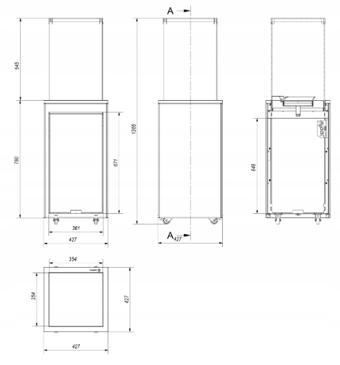 Корпус и цвет: нижняя часть каменки выполнена из черной стали с порошковым покрытием. Размеры: версия MINI ширина: 42,7 см, глубина: 42,7 см, высота: 136,60 см. Управление: автоматическое