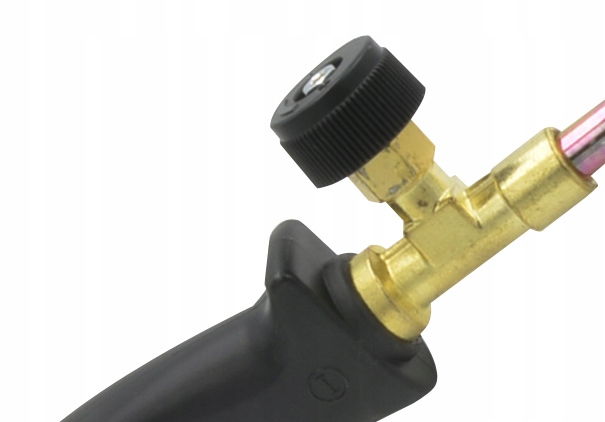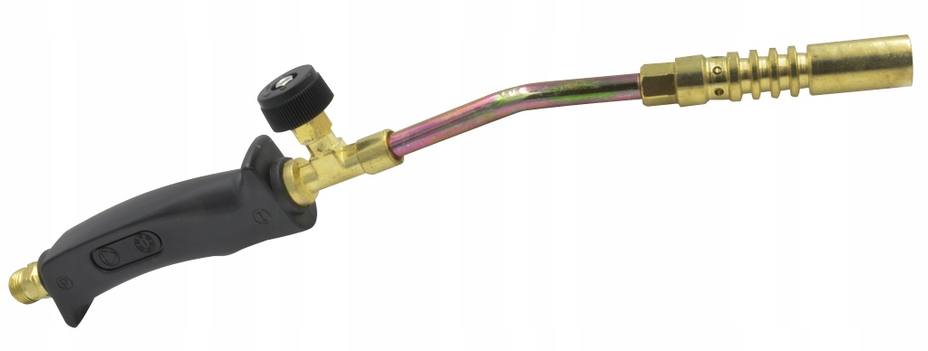 Рукоятка горелки имеет клапан, позволяющий плавно регулировать температуру пламени, и клапан, регулирующий размер пилотного пламени.